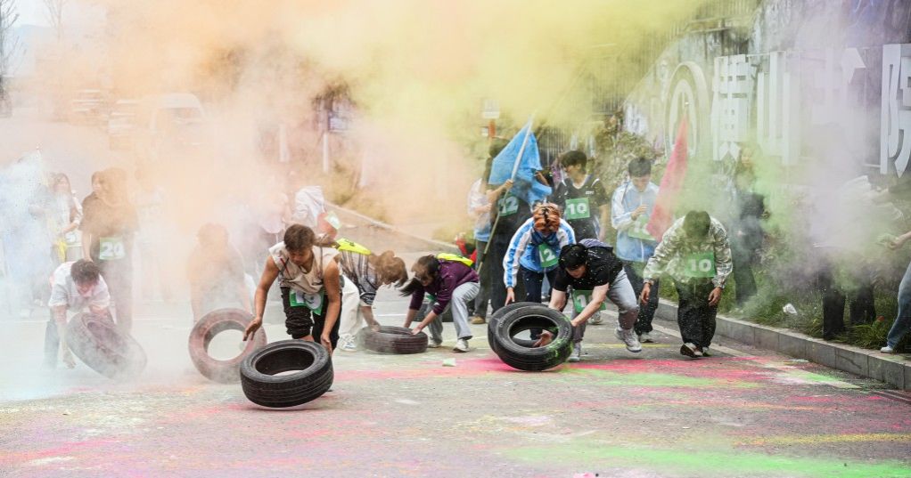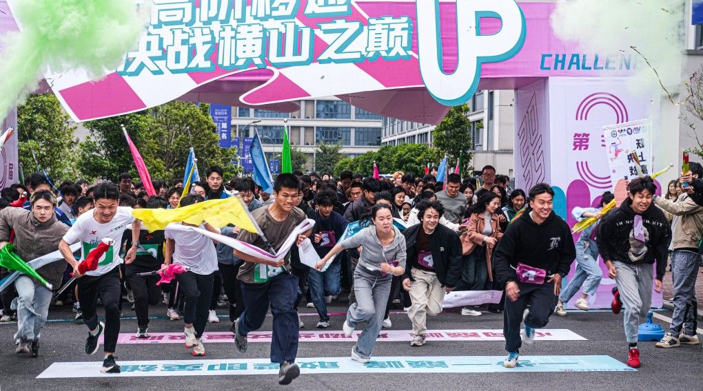 在全校师生的瞩目之下,本届赛事刷新书院竞技运动新热度!参与人数破新高,活动一经上线参与名额迅速抢空,较去年增长66.67%;在活动形式上,全面打破常规体育赛事框架,从去年"骑行追风"环湖耐力赛、"浆板逐浪"水上平衡挑战,到今年全新的"极限攀岩"垂直征服赛、"天梯竞速"高空耐力战,运动形式实现从平面到立体、从单一到复合的跨越式发展;在活力的“彩色跑道”上欢笑声、助攻声交织,选手们化身流动的调色盘,用奔跑的脚步描绘出绚丽的青春画卷,每位选手的“战服”上都形成独一无二的"色彩DNA"。