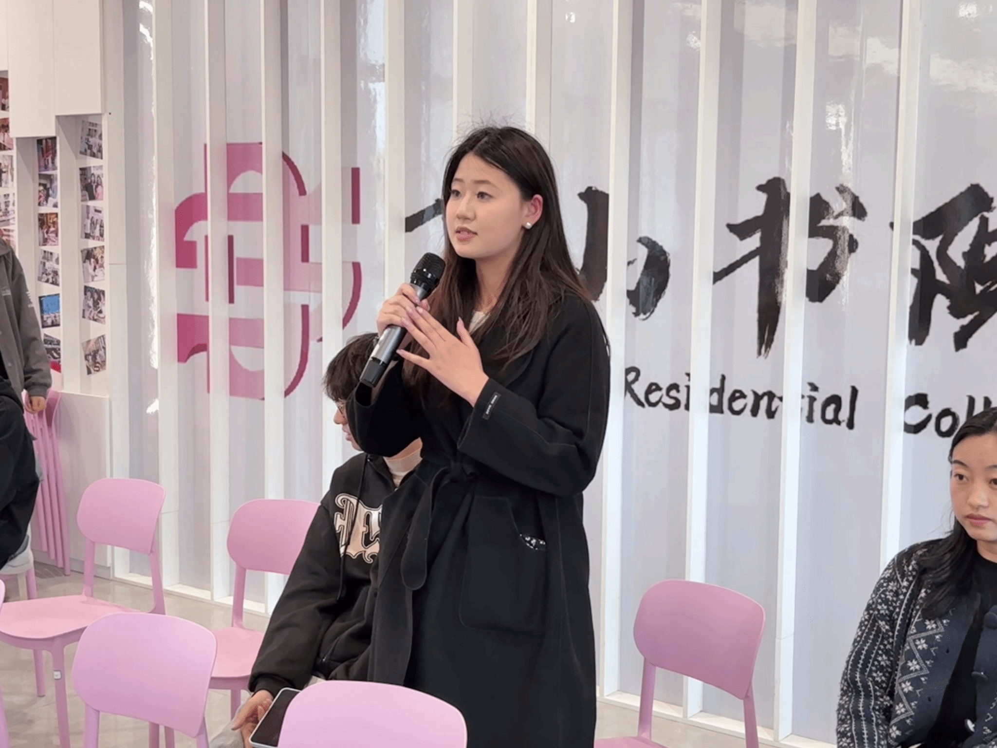 听完侯院长的精彩讲解,同学们围绕着讲座内容,结合自己在学习和生活中遇到的困境,纷纷向院长提问。观云书院的朱同学就职场工作提出了问题:“如何在竞争激烈的就业环境中,让自己无可替代?”侯院长用“秘密武器”完美的回答了这个问题——“会说话,交朋友,事做精,做到这三点,你的职场沟通,社交,技能都过关了。大家都知道,三角形具有稳定性,以这个三角来不断地加码,直到你不可替代”;丁山书院的幸同学也问到:“作为大学生,如何从零开始打造自己的IP呢?”侯院长以自身经验为例提出:“做个人IP就像炒股,本金不是重点,而是长期主义。很多人打造自己的个人IP不成功,这是为什么?是因为他们没有持续学习的能力,没有坚持。如果你能坚持每天做一个视频,每周研究一个爆款视频的底层逻辑,那么你在一年以内就能吸取百家精华,融于你自己的IP当中”
