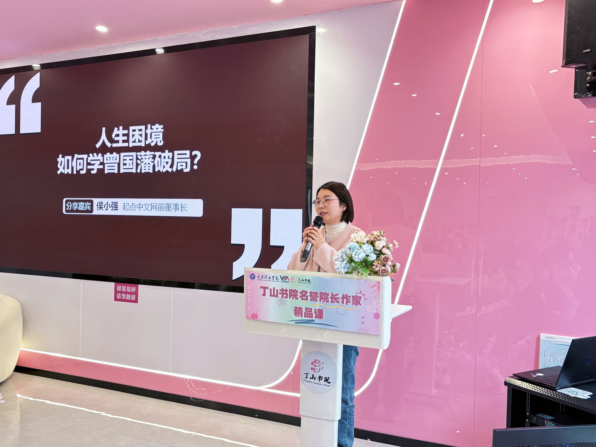 “师者,传道授业解惑也”,4月2日,丁山书院名誉院长侯小强于丁山书院DS107射手座·多功能空间以“人生困境如何学曾国藩破局”为题开展名誉院长精品课,他结合个人经历及晚清名臣曾国藩的处世哲学与当代人生的实践启示,从中提炼出6大“秘密武器”为同学们寻找破解人生迷局的方法。