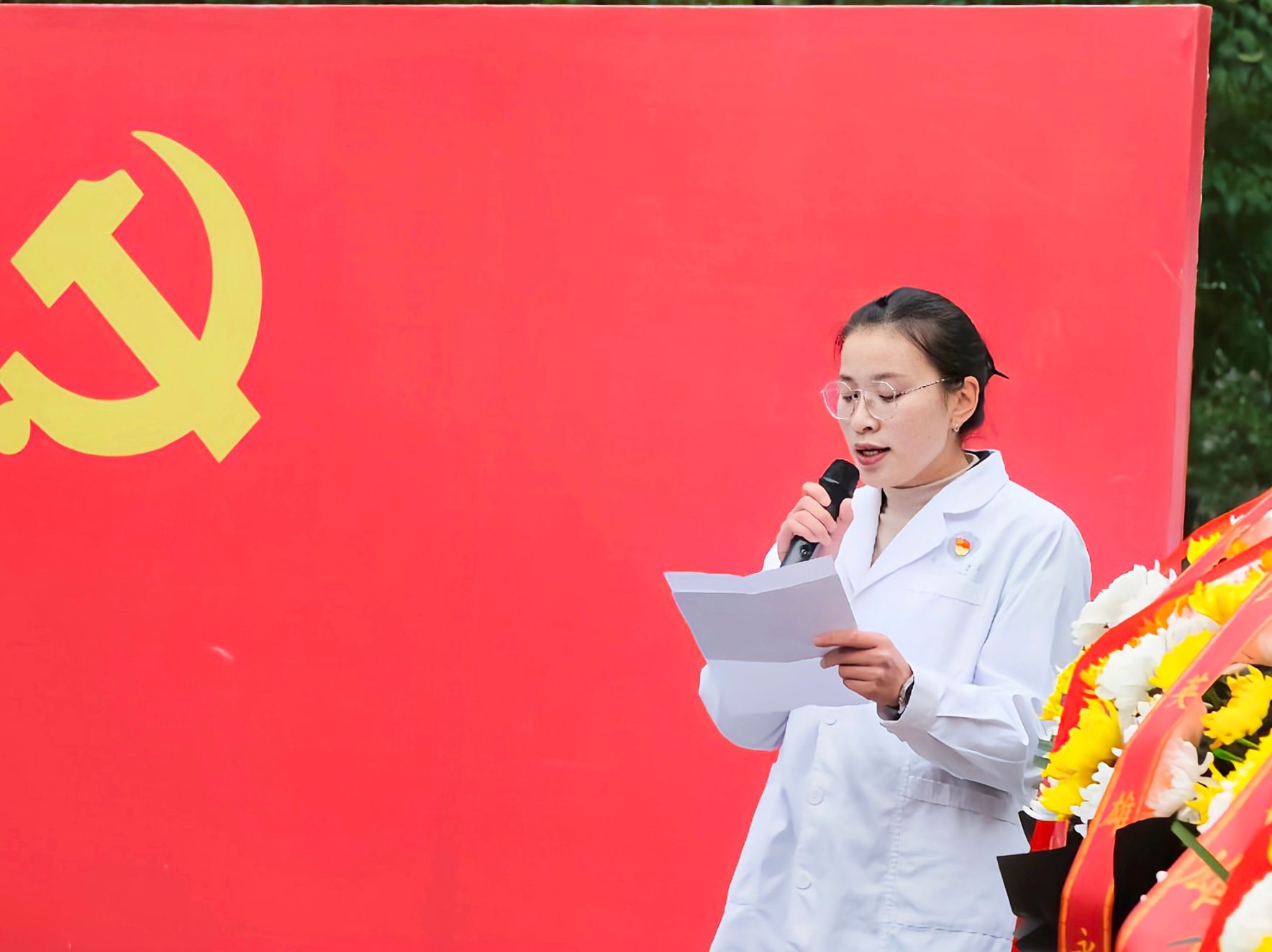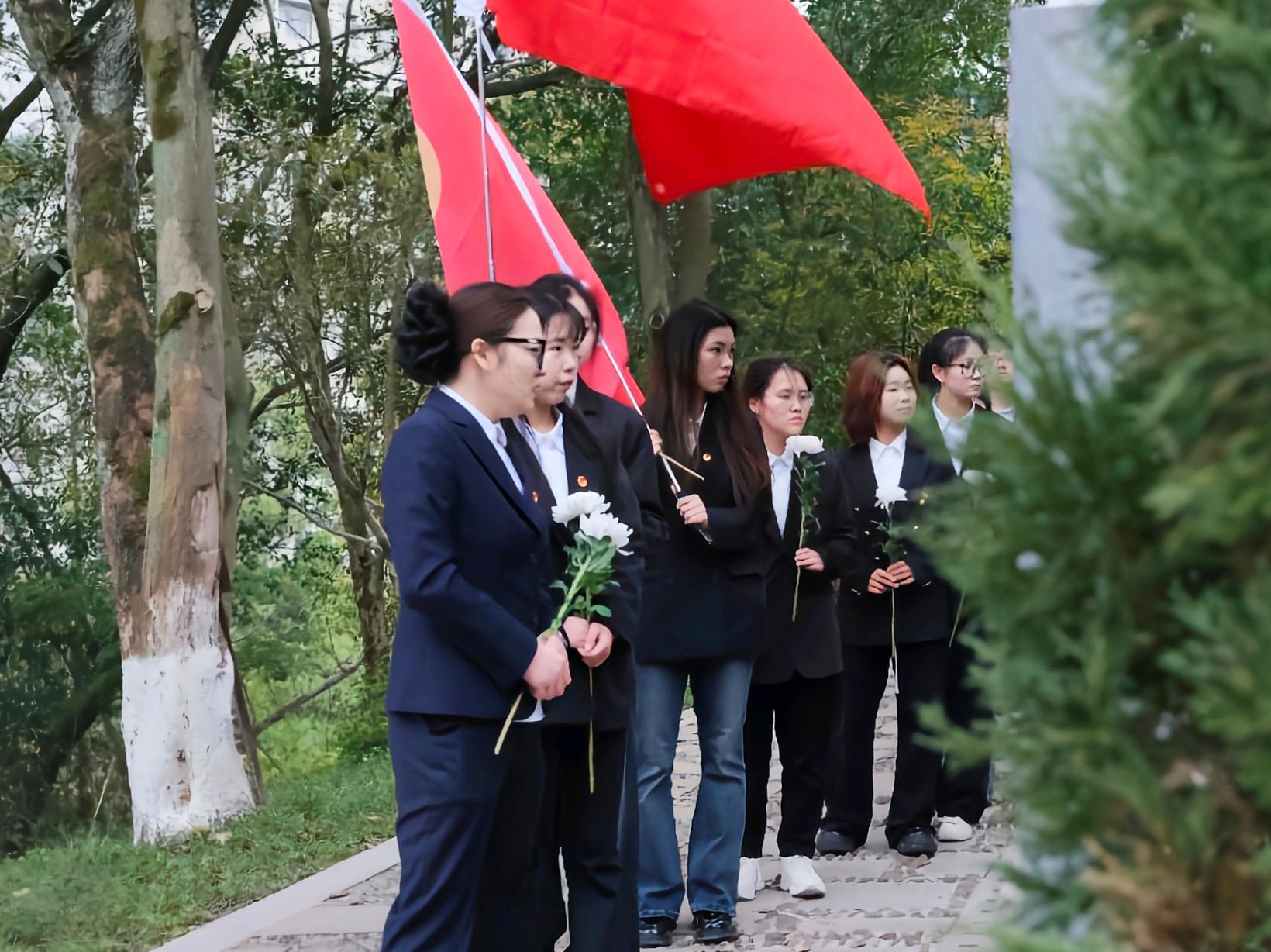 默哀结束后,由人保财险綦江支公司总经理助理刘可带领全体党员面对飘扬的党旗,整齐站定,右手握拳高举,重温入党誓词;綦江区中医院医务部干事彭平引领全体团员面向飘扬的团旗,宣读入团誓词。一句句铿锵有力的誓言在陵园上空回荡,彰显出新时代党员、团员不忘初心、砥砺前行的坚定信念。这不仅是对先烈的承诺,更是对未来的郑重宣告,彰显着为党和人民事业拼搏到底的决心与勇气。