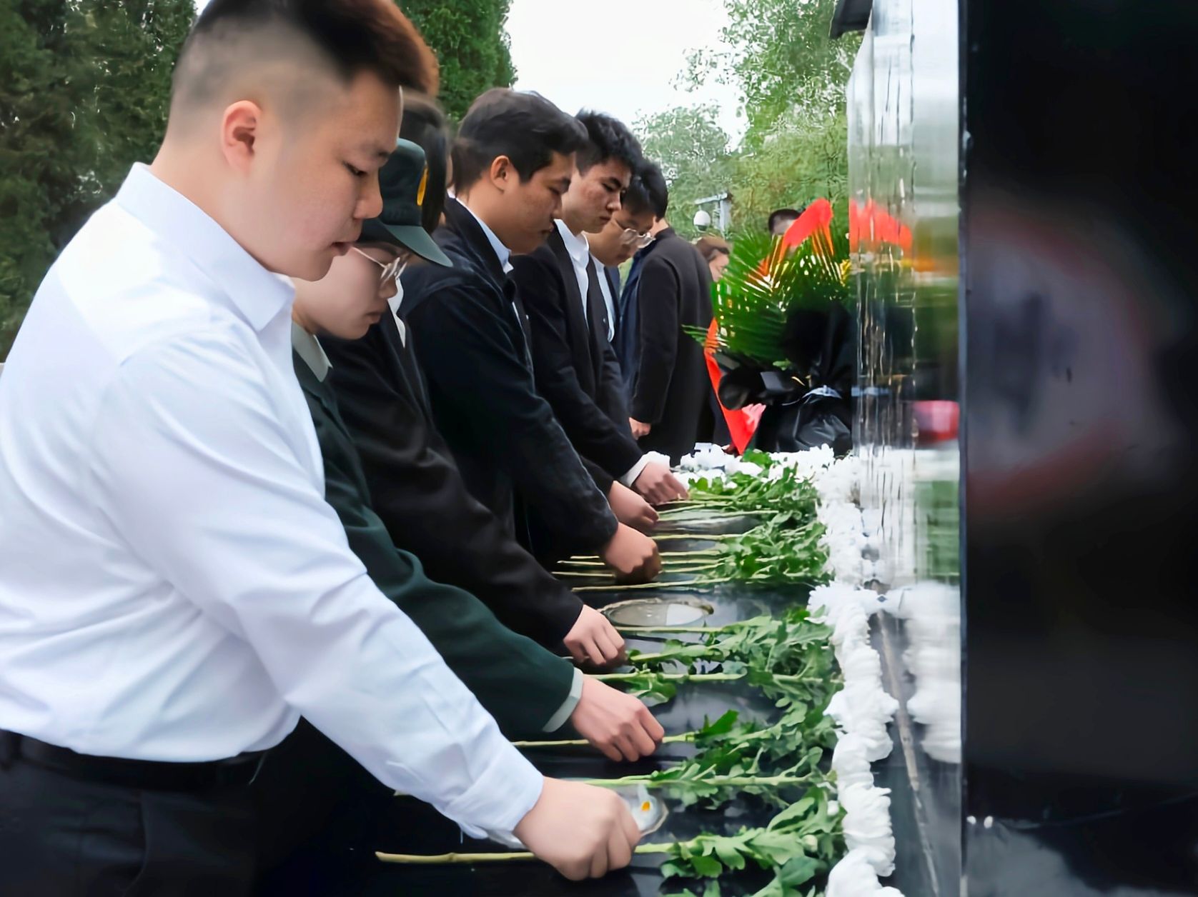 发言结束后,全体同志有序参观烈士陵园,献上手中鲜花,拿起清扫工具,俯身擦拭墓碑,眼神中满是敬重与不舍。现场凝重深沉,唯有微风拂过,似乎在传递着生者对先烈无尽的思念与感恩。