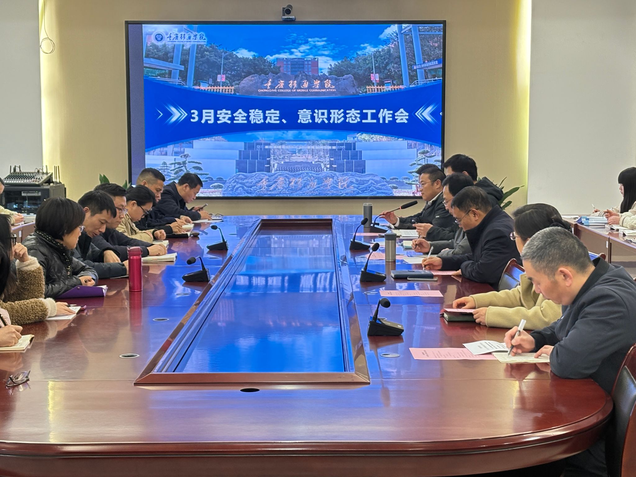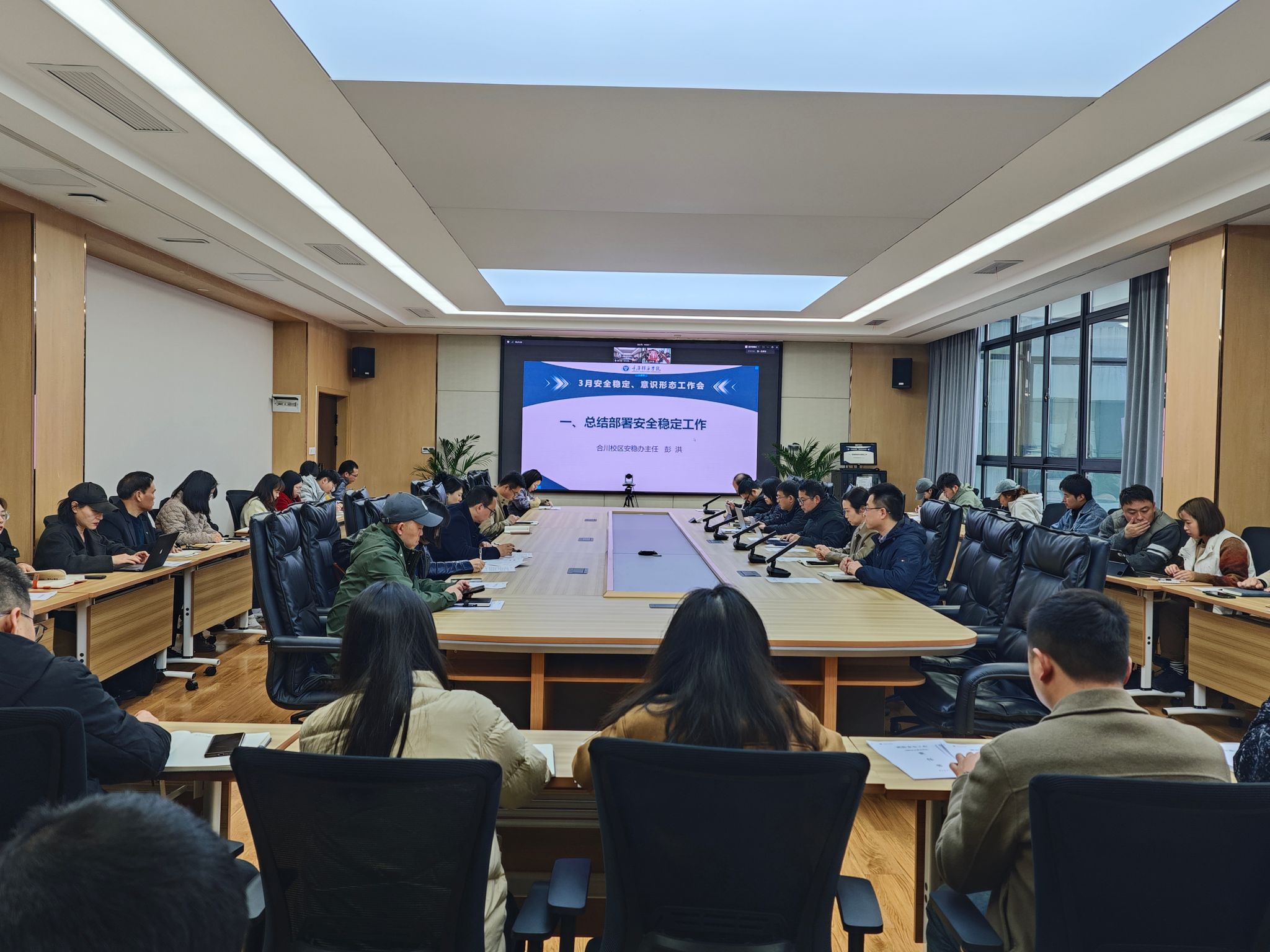 为应对校园安全与意识形态领域的新形势,重庆移通学院于3月31日召开安全稳定、意识形态工作专题会议。会议由校长助理尹浩亮主持,校长吕翊、校党委书记何先刚、常务副校长王永周、校党委副书记周伟等在家校领导、各职能部门负责人、二级学院负责人及学工系统负责人、安稳办全体成员参加会议,围绕校园安全体系建设与意识形态阵地管理等议题展开深入研讨。