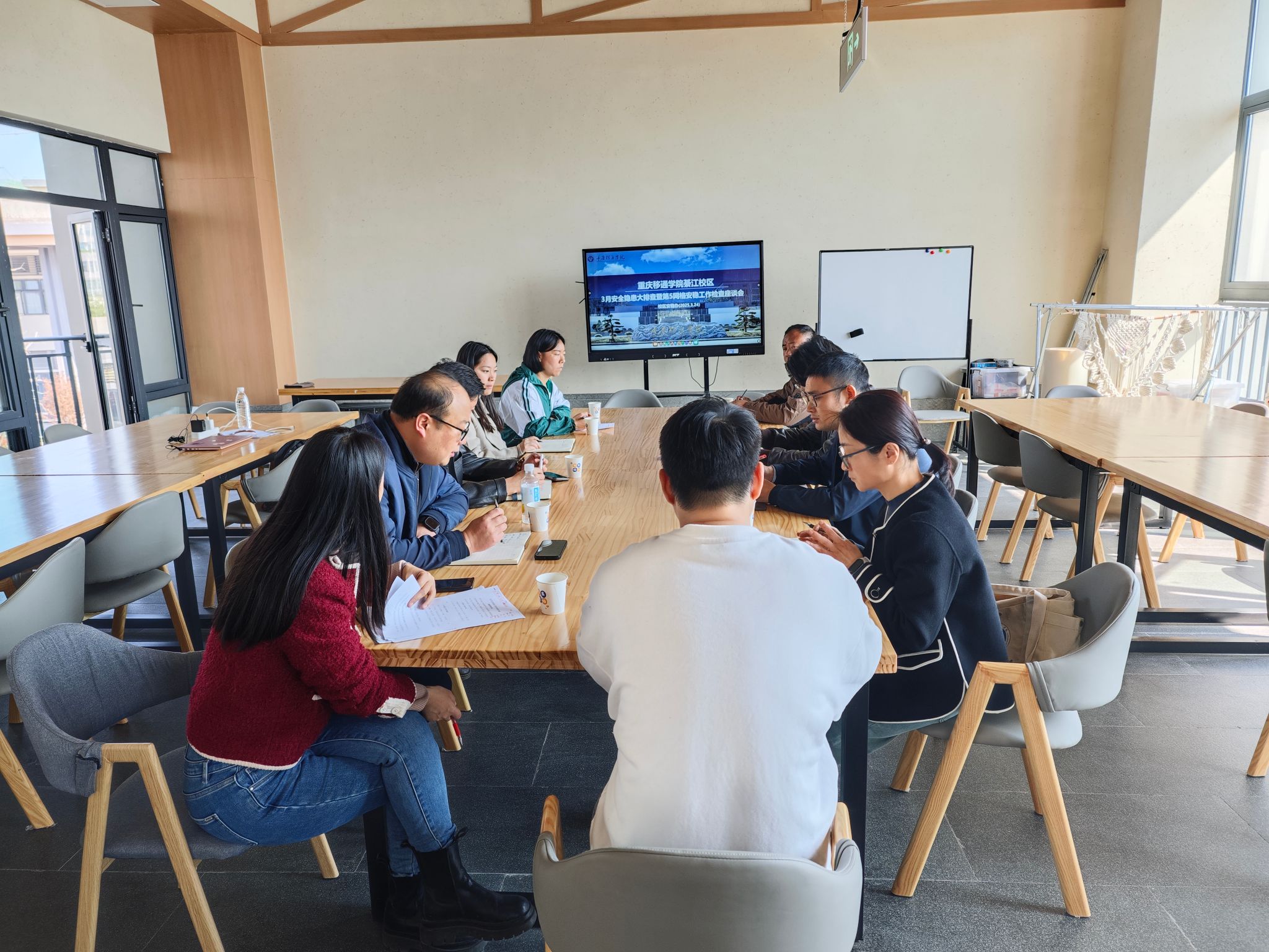 在经验交流环节,合川校区名师课堂刘方旺老师分享“三查三守”创新机制成果,借助该机制,讲座安全有序,隐患及时整改。在意识形态管理上,落实“一会一报”制度,起草管理办法。綦江校区远景学院强杨老师分享三级责任网络建设经验,通过“领导-导师-学生干部”联动,实现全年安全零事故。同时,校区创新案例通报机制,完善安全教育与心理防护体系。