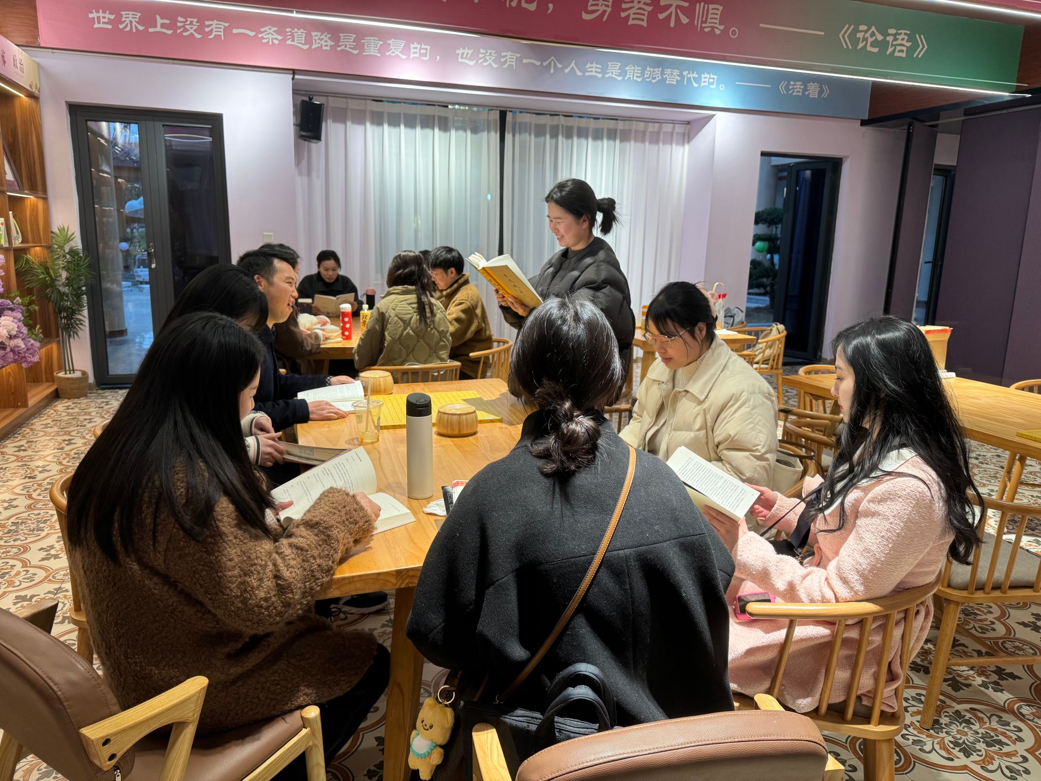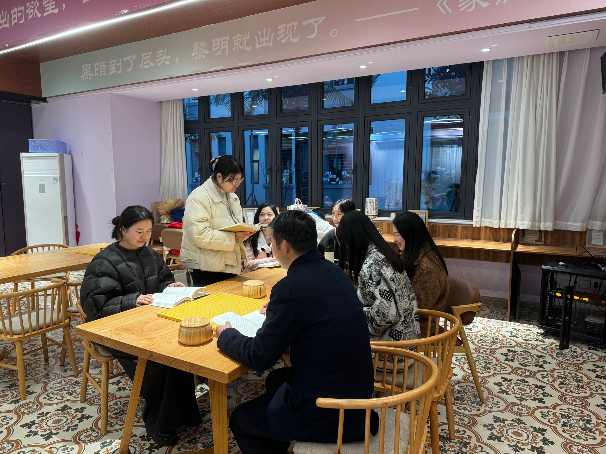 在数字经济与全球化浪潮的背景下,商科教育面临快速迭代的挑战。为深化新商科教育教学改革,提升教师专业素养与行业前沿洞察力,营造浓厚的学术氛围,綦江新商科教学部于4月1日中午在观云书院华文书吧开展了“大咖阅读”系列活动。本次活动以“阅读经典·对话前沿·赋能新商科教学”为主题,组织教师们共读商业领域经典著作与行业领袖思想,旨在通过集体学习与研讨,促进教师知识更新、教学能力提升与科研灵感激发。