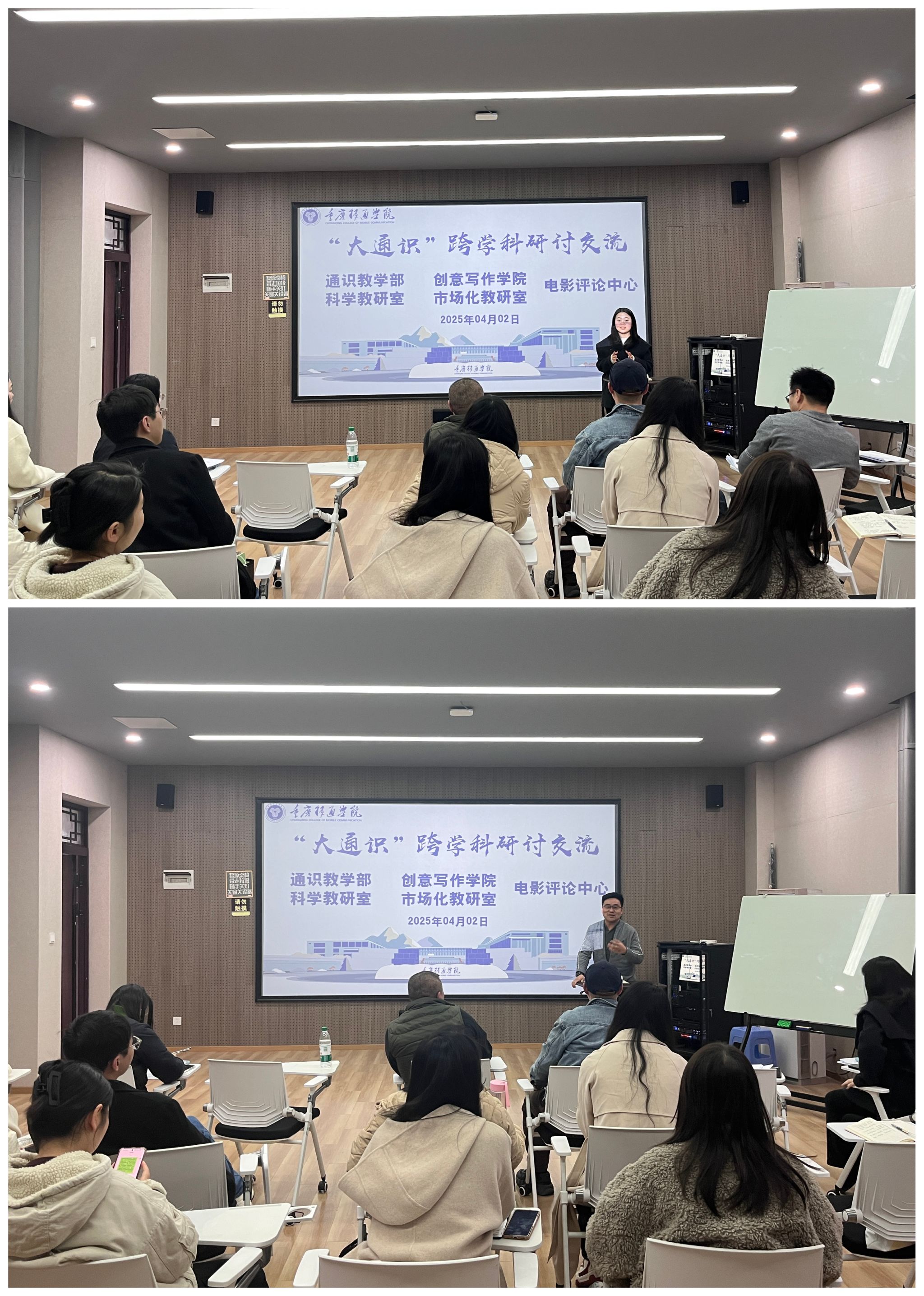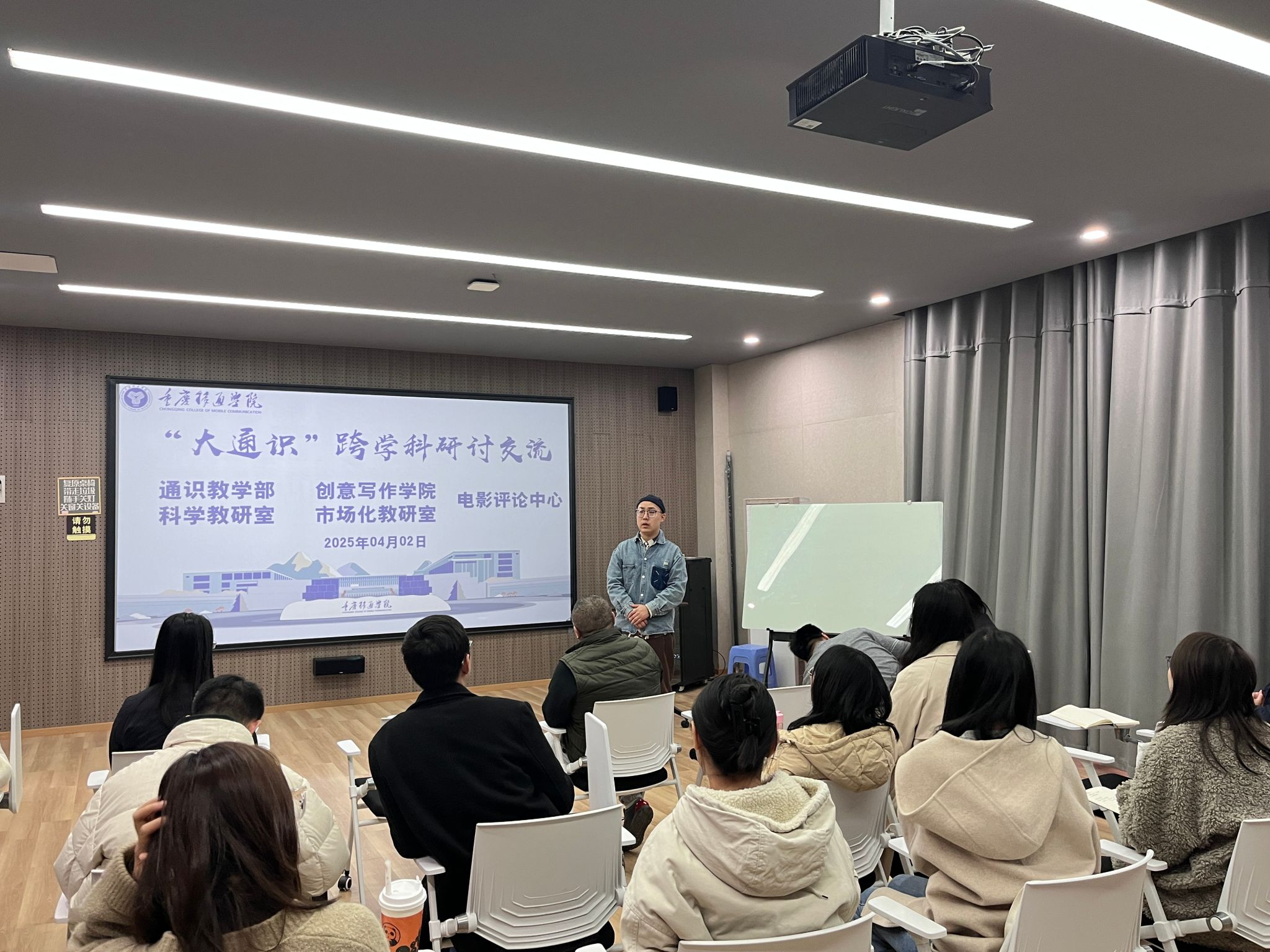 为深化通识教育教学改革,推进双师课堂建设,通识教学部科学教研室组织开展“大通识”跨学科研讨交流会。会议邀请创意写作学院市场化教研室主任杨文浩、电影评论中心主任助理幸李寒参与交流,科学教研室主任胥云龙主持会议,科学教研室全体教师参与研讨。会议围绕跨学科课程设计、双师授课模式、教学资源共享等议题展开深度交流。