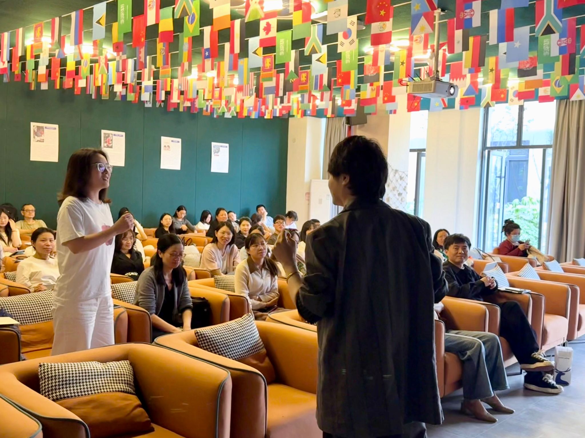 李老师讲解深入浅出、层次分明,不仅引发了教师们对教学本质的深入思考,也激发了现场的热烈反响。在随后的互动环节,教师们积极提问交流,现场气氛活跃。他进一步指出:“一堂好课不仅在于内容的丰富,更在于呈现方式的巧妙。教学既是设计,更是表达。”