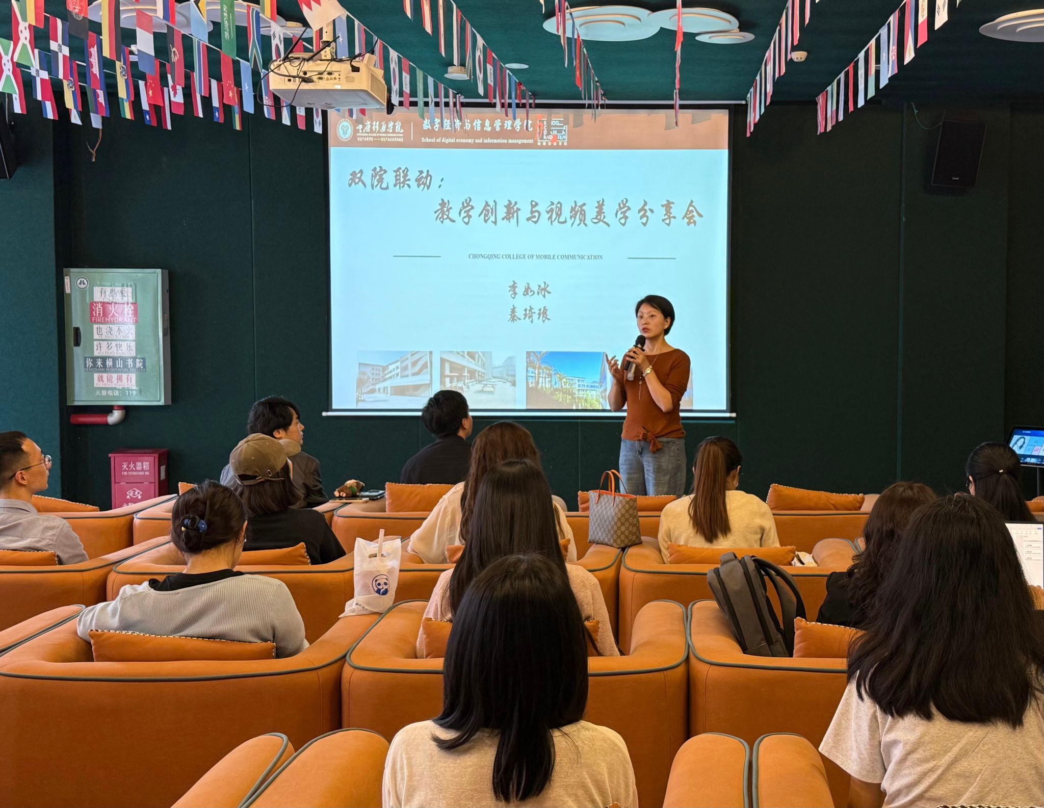 为进一步推动课堂教学创新与教师专业能力提升,数字经济与信息管理学院于2025年4月9日下午在横山书院流光多功能影音厅举办"教学创新与视频美学专题分享会"。本次活动特邀戏剧影视学院教学副院长秦琦琅、动画专业负责人李如冰担任主讲嘉宾,学院院长刘贵容、教学副院长王哲携全体专任教师全程参与。
