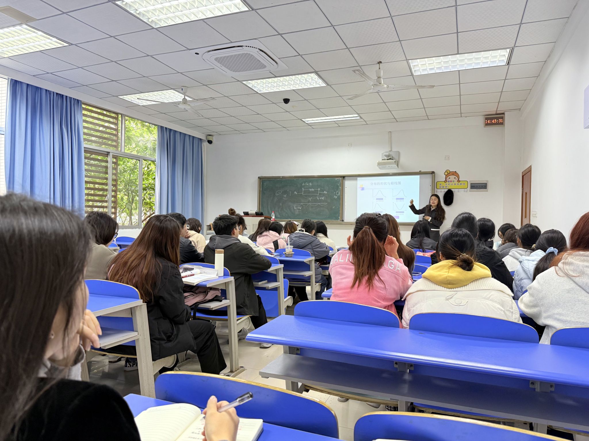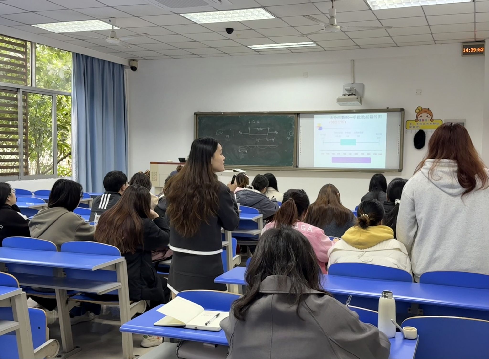 课堂中,钟老师运用“区域消费偏好调查”案例,向学生展示了条形图与饼图的比较优势,引导学生思考不同图形背后的设计逻辑。在讲解数值型数据时,她引入“城市PM2.5浓度监测”真实数据,带领学生使用直方图、箱线图等工具进行可视化分析,帮助学生掌握从图形中解读分布特征和识别离群值的方法。