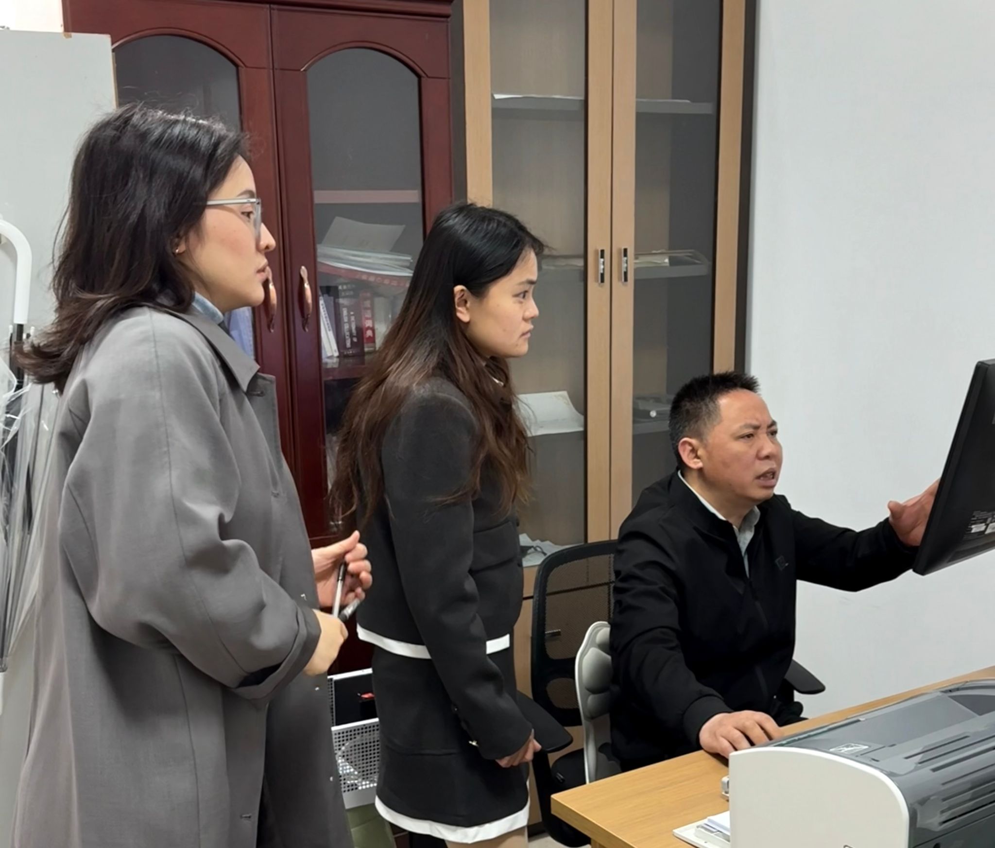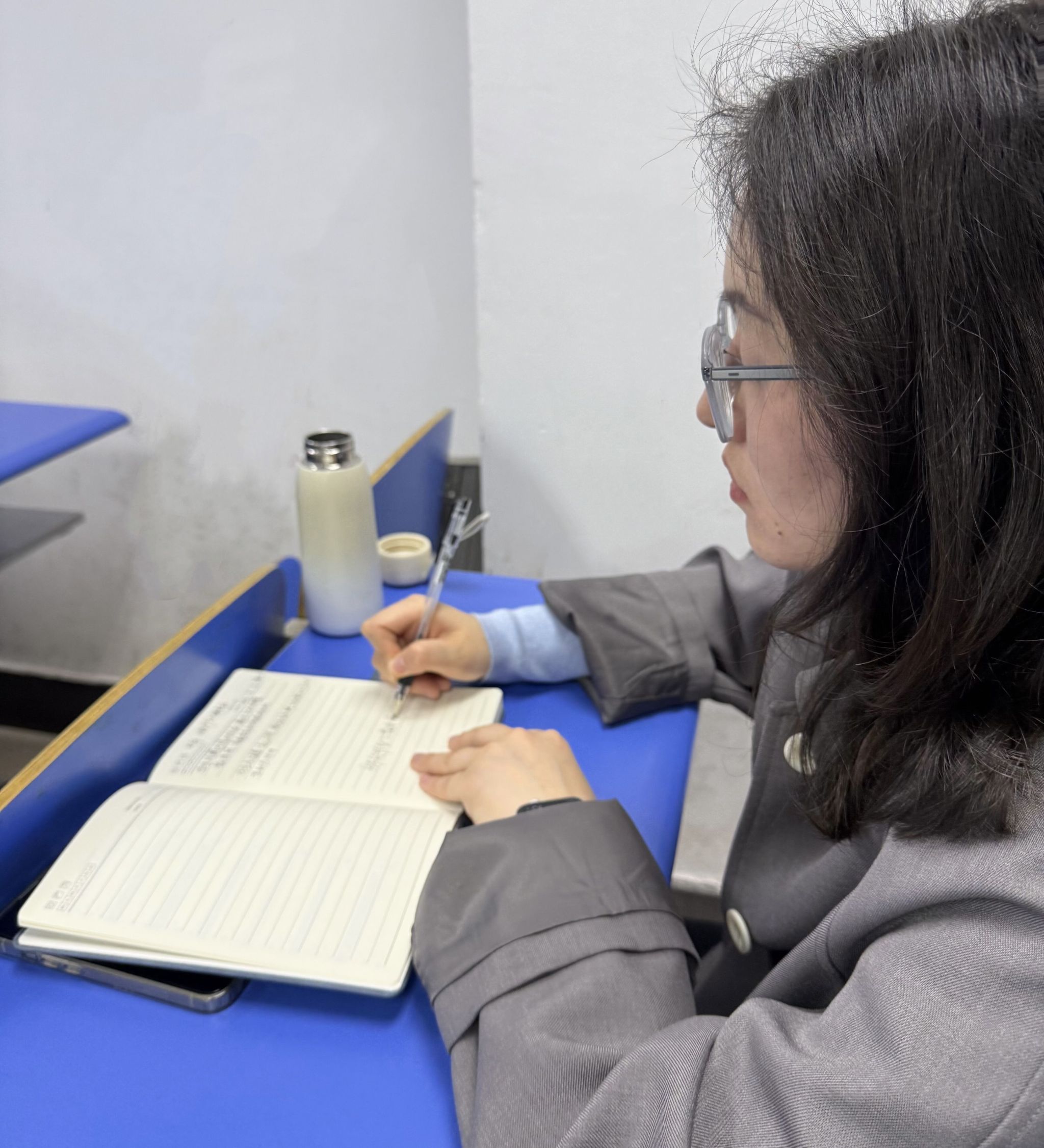 冉老师、吴老师认真听课并详细记录教学要点、互动方式和工具使用效果,重点关注如何将“理论—案例—工具”有机结合。冉老师表示:“钟老师的课程注重学生主体性与方法理解的统一,图形不仅是呈现工具,更是促进学生逻辑思维的媒介。”