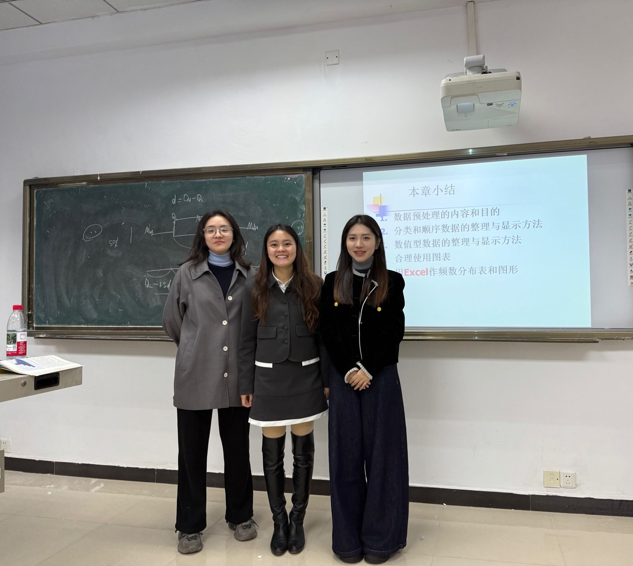当日下午2:20,冉老师和吴老师走进了长江师范学院经济统计系钟佳丽老师主讲的《统计学》课堂,现场观摩了以“数据的整理与显示方法”为主题的教学单元。课程围绕分类数据、顺序数据和数值型数据三类基础类型展开,通过经典案例引导学生理解不同数据类型的表现形式与可视化策略。