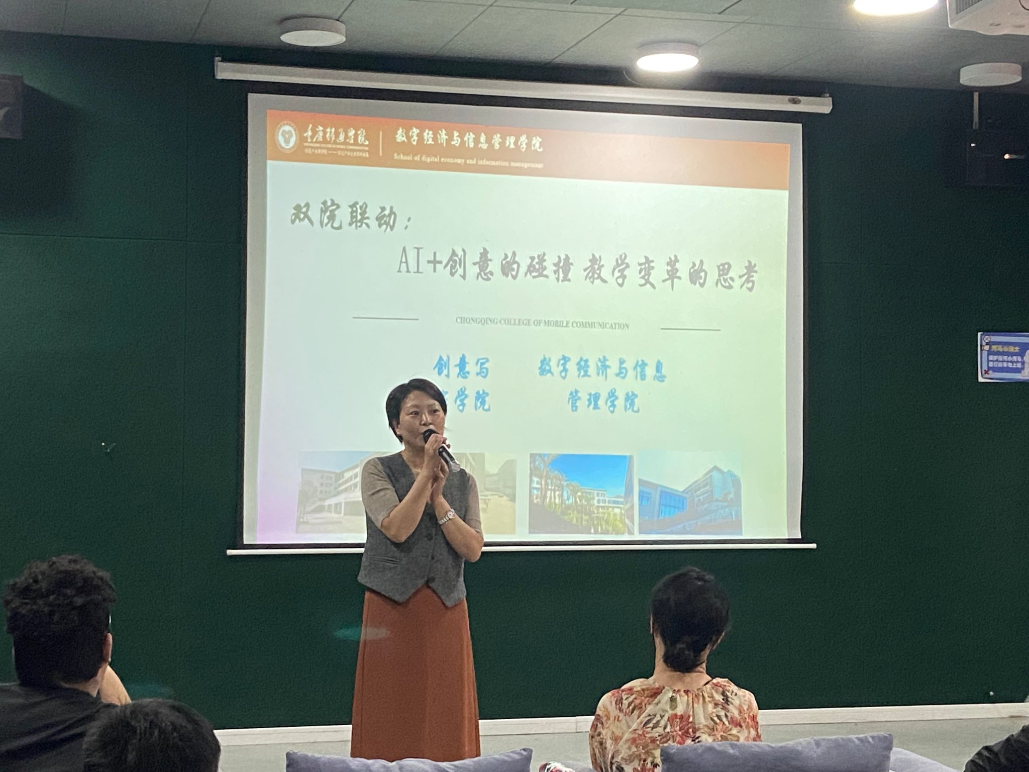 为深化教学改革创新,探索人工智能技术赋能教育的新路径,数字经济与信息管理学院于2025年4月16日14:00在綦河书院2号楼A区星云影音室举办专题培训会,特邀创意写作学院副院长苏瓷瓷、知名教育专家王恒绩开展教学指导。数字经济与信息管理学院院长刘贵容主持会议,学院全体教师及创意写作学院骨干教师参会。