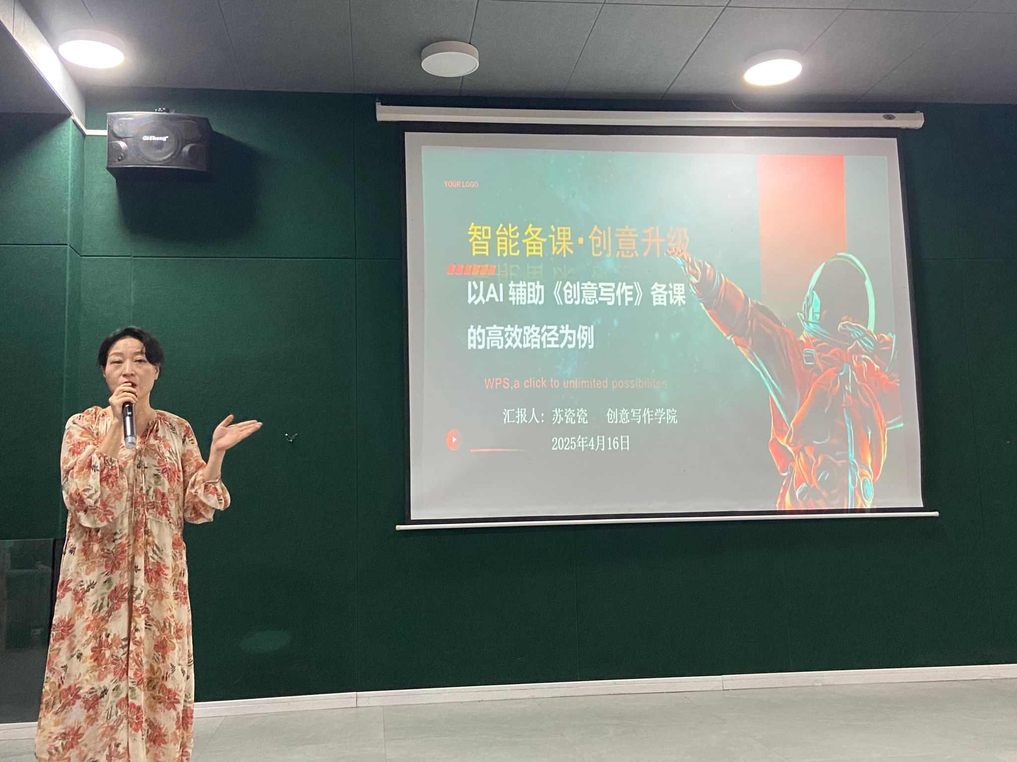 苏瓷瓷老师进一步介绍了创意写作学院骨干教师的优秀成果,展现跨学科合作潜力。刘贵容院长在总结中指出:“这次研讨会让我们看到了技术赋能教育的无限可能,也学到了宝贵的课堂管理经验。期待未来两院加强交流,共同提升教学质量。”