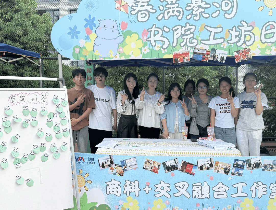 4月16日16:00至18:00,重庆移通学院“春满綦河·书院工坊日”活动在瀛溪书院旁篮球场火热举行,全校师生齐聚一堂,共赏书院18个特色工坊的独特魅力,感受跨学科交流的浓厚氛围。其中,由喻雪琪和陈庆宁老师负责的“商科+”交叉融合工作室凭借新颖的展示与互动形式,成为活动中的一大亮点。