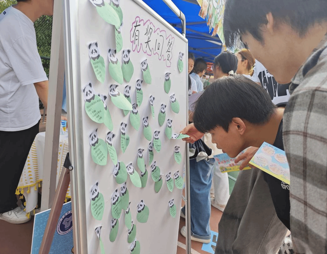 活动现场,“商科+”交叉融合工作室以一面精心布置的照片墙,生动展现了工作室自成立以来开展的各类活动与取得的丰硕成果。一张张照片,记录着同学们在商业案例分析、实践调研、项目策划等活动中的精彩瞬间,吸引了众多师生驻足观看。不仅如此,工作室还设置了别出心裁的有奖问答活动,题目围绕商科常识展开,以撕便签答题的形式,激发同学们的参与热情。同学们纷纷撕下便签,认真思考作答,答对者即可集一个章,并领取精美小礼品。