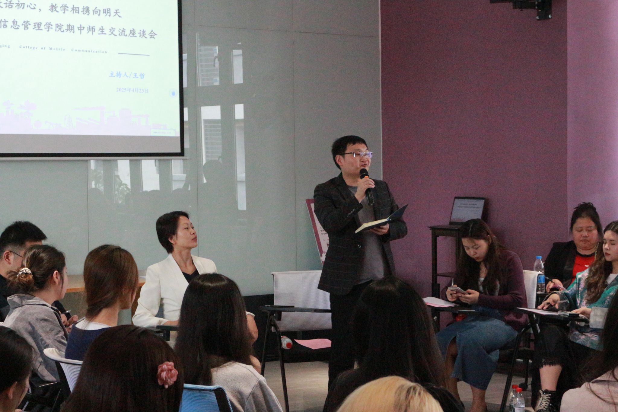 愉悦的时光总是短暂的,不知不觉中,师生的愉快交流接近尾声,面对同学们在学习、生活中存在的一些困惑,学生处处长唐尚静用非常温和、亲切而坚定的语气表示,将会关注同学们在各方面存在的困惑,也将反馈并协同相关部门一起为同学们解决问题;同时,唐处长鼓励同学们在适应环境中生长,要相信自己的能力,无论在生活中、学习中都能适应并能应对各种挑战,成就美好的未来。