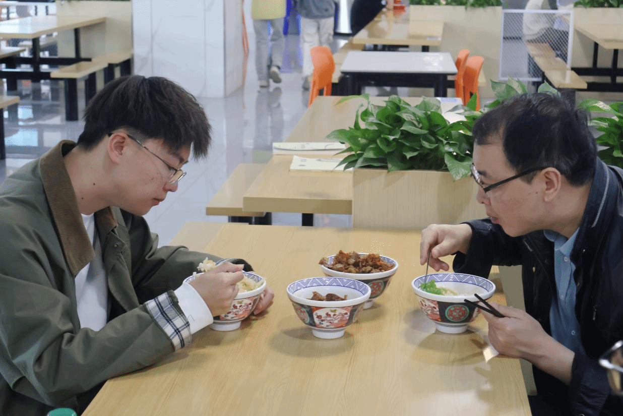 午间时分,学生陆续下课,南州食堂、东溪食堂飘散着诱人香气,辅导员、家长和学生们围坐用餐。从食材溯源到烹饪操作均通过标准化监管,家长们感受到了食堂严格的安全管理流程。餐台陈列的菜品色泽鲜亮、口味醇香。家长们品尝后纷纷称赞:“食材新鲜,制作有安全保障,味道也很好!”餐后,学生陪同家长参观书院功能室,共享静谧午休时光。