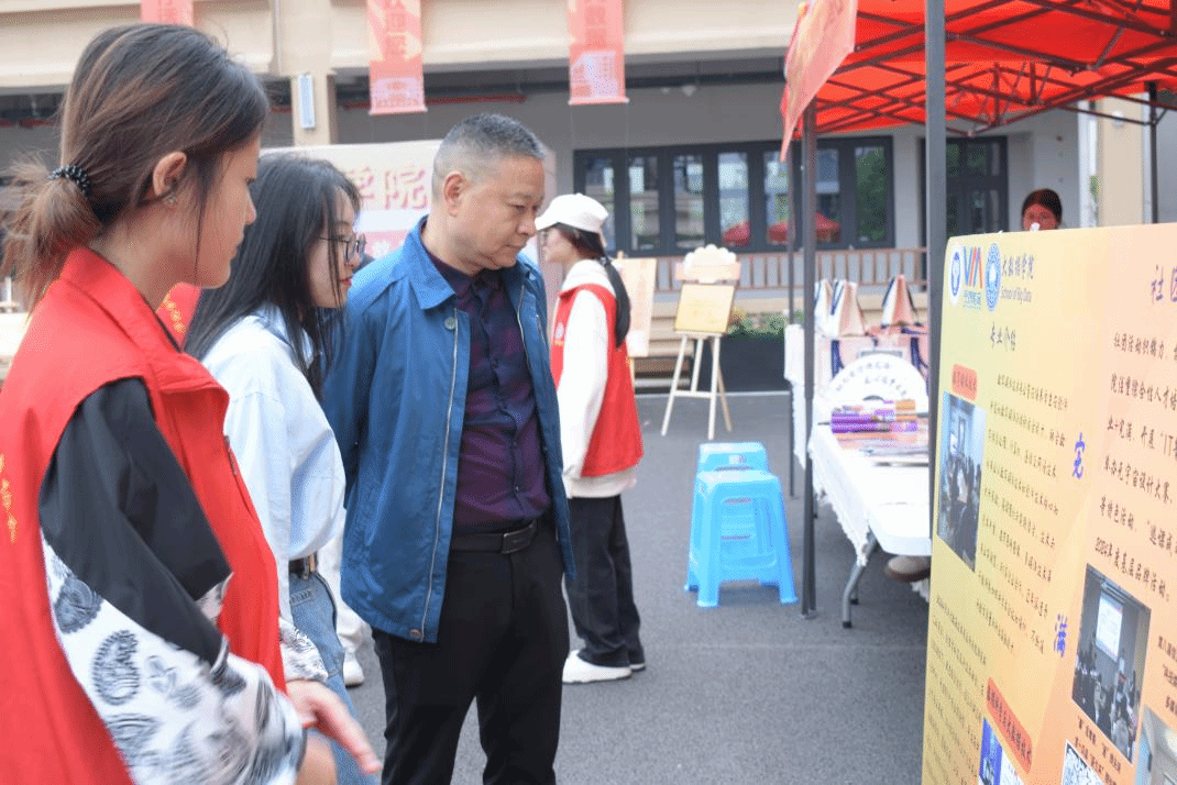 晨光洒落书院檐角,家长们在志愿者引导下步入丁山书院中庭。签到后,家长接过伴手礼,印有院徽的文创帆布袋和育人手册,随后移步学院风采宣传展区。辅导员与志愿者引导家长驻足观看:展板上,学院发展历程脉络清晰;展架间,学科竞赛奖状与完满活动影像相映成趣;风采墙前,学工团队的育人故事生动呈现。现场休息区,家长与师生围坐交流,话题从课业学习延伸至职业规划,从成长困惑聊到未来愿景,育人的对话氛围热烈且浓厚。