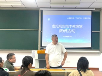 教研室专业负责人罗小波老师就教研室的专业设置及人才培养方案进行了深入讲解。罗老师结合行业发展趋势,从专业定位、课程设置、实践教学等方面展开阐述,他强调,虚拟现实技术作为一门新兴的交叉学科,具有广阔的发展前景和应用空间。基于这一学科特性,在专业设置上需紧密结合行业需求,注重培养学生的实践能力和创新精神。在人才培养方案中,要合理安排理论课程与实践课程的比例,加强校企合作,为学生提供更多的实习和就业机会。