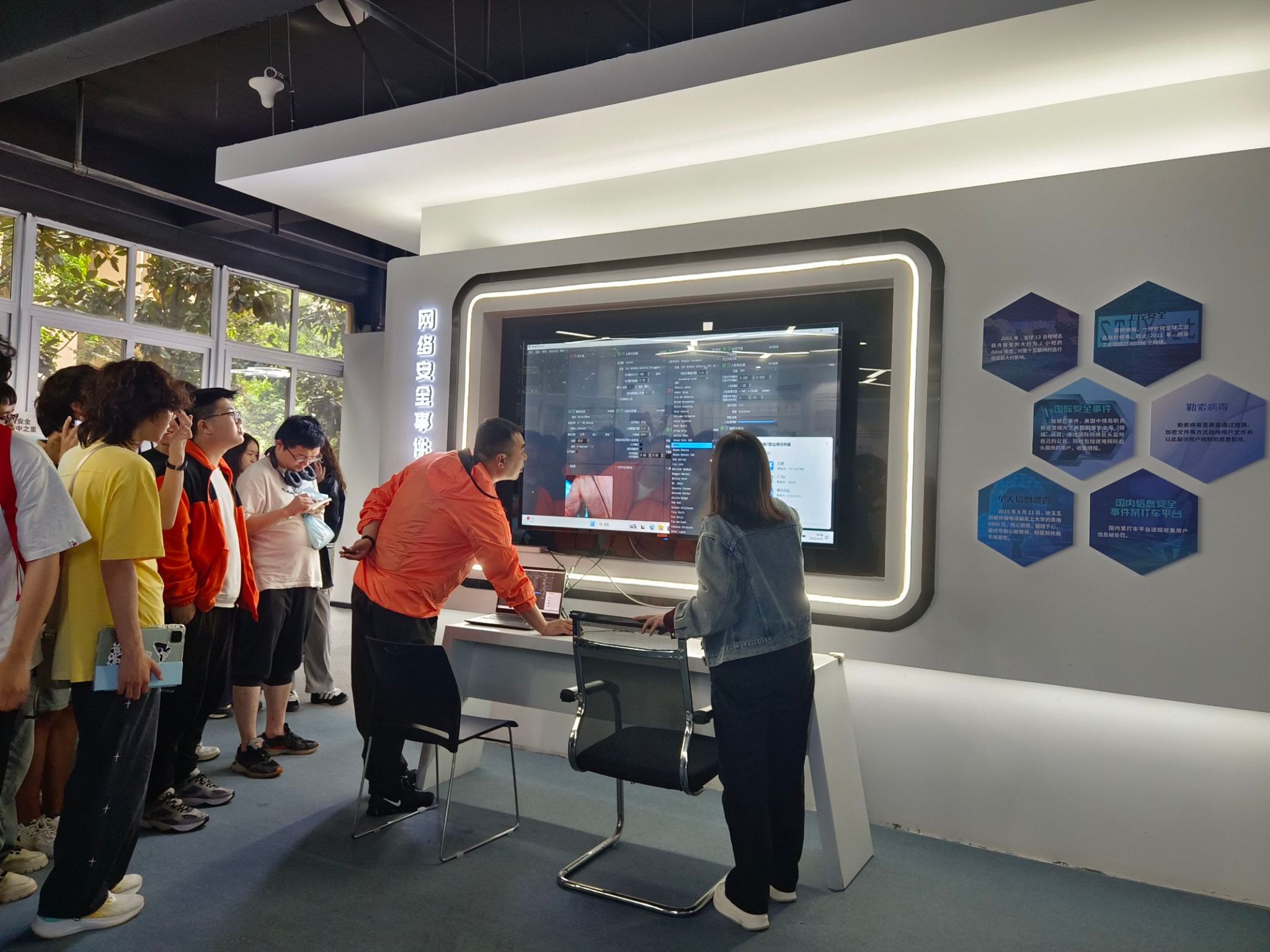 在易阅科技网络安全科普展厅,先进的科技设备让同学们大开眼界。借助“数字时空隧道”全息影像系统,大家清晰看到网络安全技术从传统防火墙到AI安全防御体系的发展历程。动态时间轴与交互式投影技术,生动展现网络安全领域的关键事件,让同学们沉浸其中,感受网安魅力。AI换脸体验区更是让大家切身体会到数字技术的两面性,在体验趣味的同时,也深刻认识到网络安全防护的重要性。