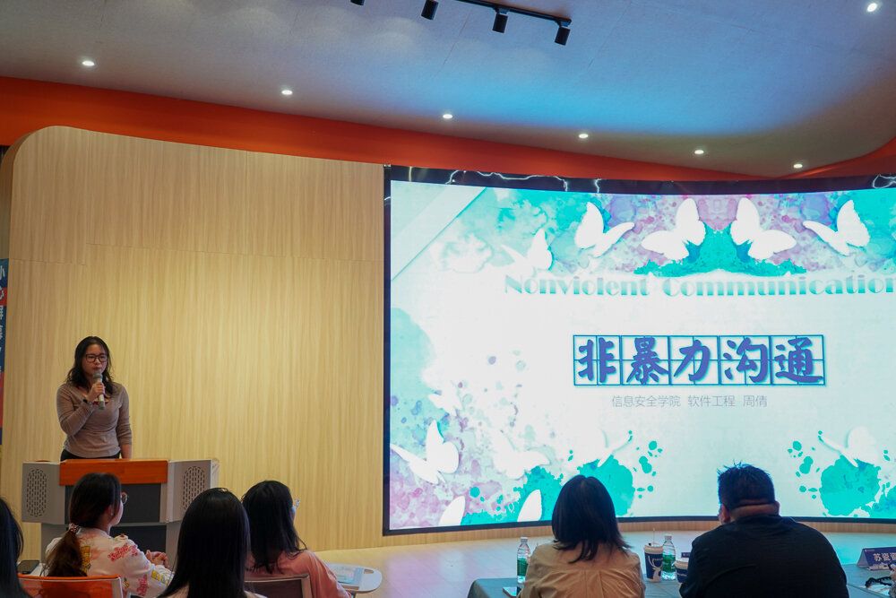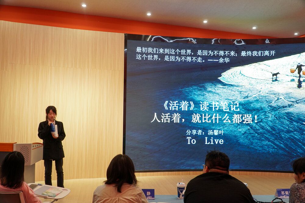 紧接着,来自信息安全学院软件工程专业的周倩同学向我们荐读的书籍是《非暴力沟通》。在她的分享与荐读中,让我们了解到“非暴力”沟通的重要性。她为我们介绍了如何能在沟通中不伤人,并用更能使人接受的表达方式达到高效的沟通效果。而计算机学院2023级智能科学与技术专业的郭军同学则为我们推荐了《瓦尔登湖》一书。它如一泓清泉涤荡心灵,让我们于喧嚣中觅得宁静,重思生命本质。最后,戏剧影视学院2023级电影制作1班的汤馨叶同学带我们重温《活着》。书中展现的生命韧性令人动容,让我们明白,活着本身便是意义,无论遭遇什么,我们都应该勇敢面对生活。