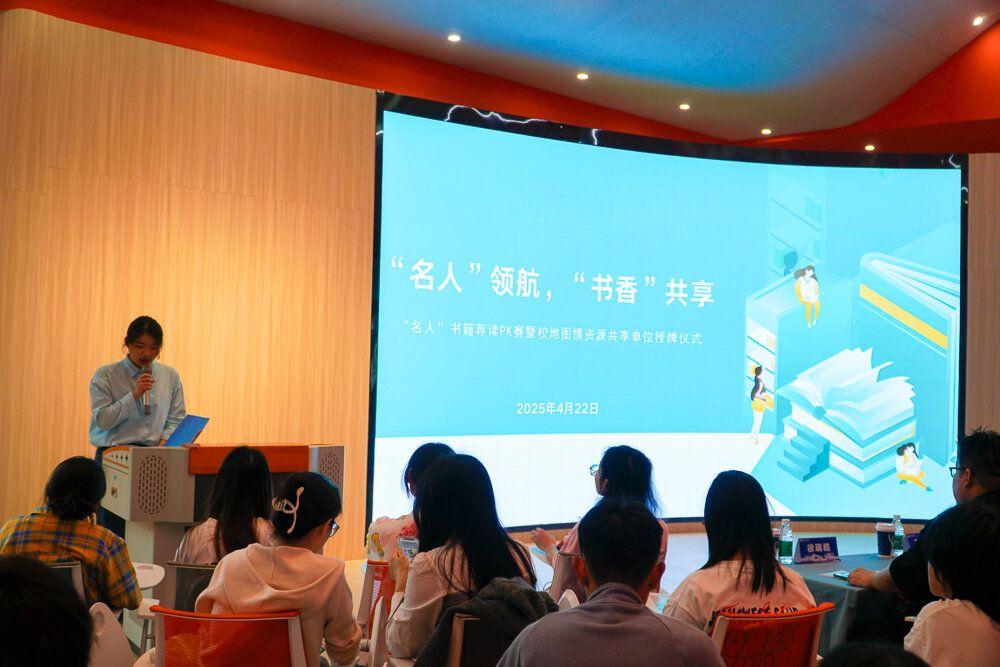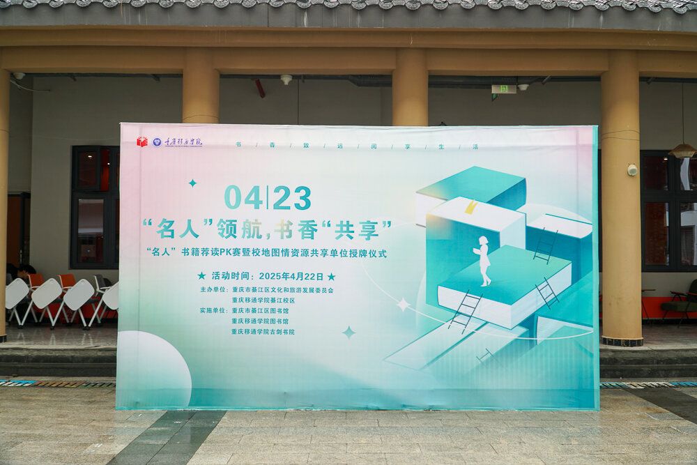 “书卷多情似故人,晨昏忧乐每相亲。”在这个充满希望与活力的春日,我们因书相聚,共赴一场精神的盛宴。为迎接世界第30个读书日的到来,重庆移通学院綦江校区图书馆联合綦江区图书馆于2025年4月22日在古剑书院含光・报告厅共同举办“名人”领航,书香“共享”——4.23“名人”荐读PK赛暨校地图情资源共享单位授牌仪式。重庆市綦江区图书馆党支部书记、副馆长代浩,重庆移通学院校长助理梁少锋,綦江校区创意写作学院副院长、中国作家协会会员苏瓷瓷,綦江校区创意写作学院传统文学教研室主任徐瑞皓,綦江校区创意写作学院教师马静,地域文化与城市发展研究院教师刘敏,重庆移通学院图书馆馆长助理张正光以及綦江区图书馆、重庆移通学院图书馆的老师们参加本次活动。