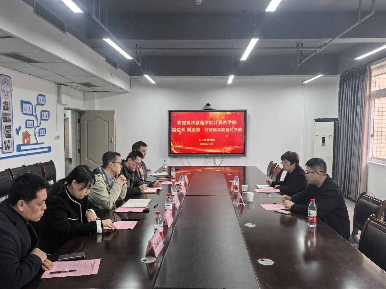 2025 年 4 月,重庆移通学院计算机学院赴重庆工商大学人工智能学院,开展学科建设专题调研活动。计算机学院副院长向碧群,计算机科学与技术教研室主任卢星儒共同参加,旨在通过校际联动,深化交流合作,推动计算机学科高质量发展。