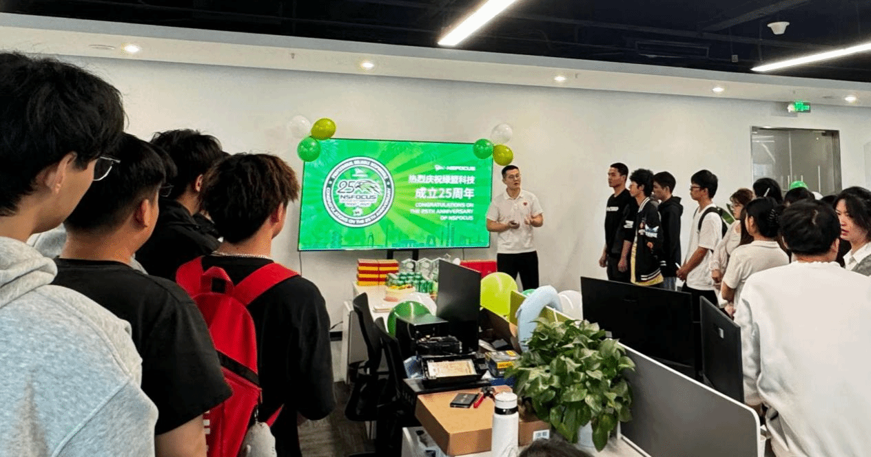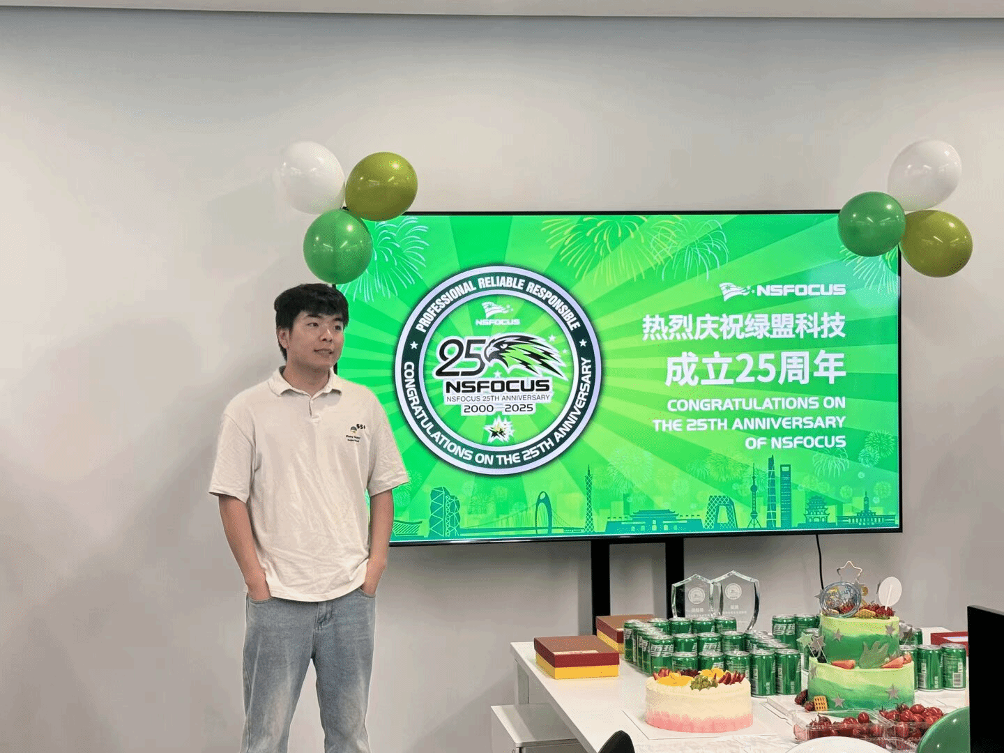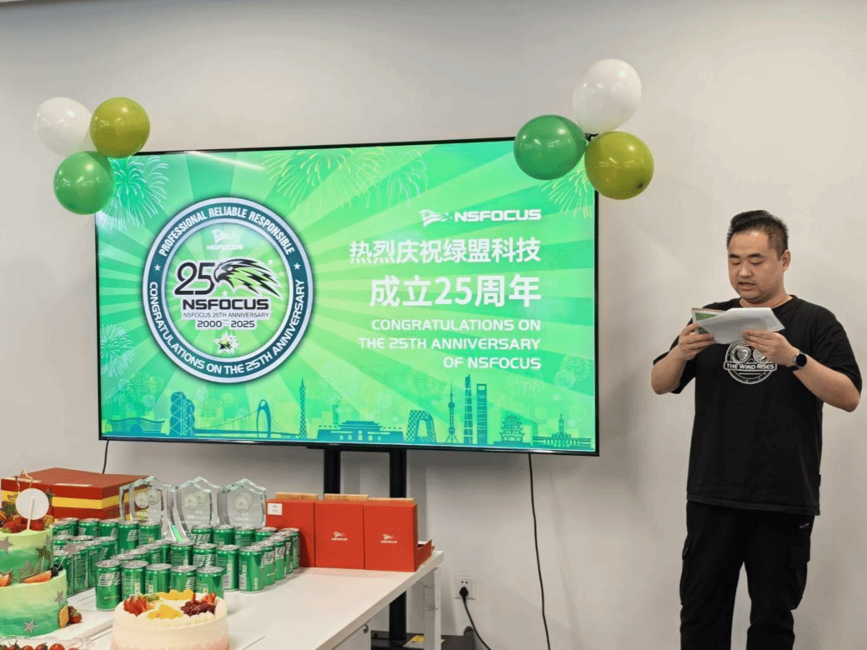 恰逢绿盟25周年庆典,同学们现场见证了意义非凡的颁牌仪式。璀璨的牌匾不仅承载着每个人工作的辉煌成就,更彰显着绿盟在行业中的责任与担当。企业负责人在致辞中回溯企业“守护网络空间安全”的初心,着重强调技术创新与人才培养的战略意义;严老师则从行业发展趋势出发,深入解析网络安全领域的未来走向与人才需求,为同学们的专业发展之路点亮明灯