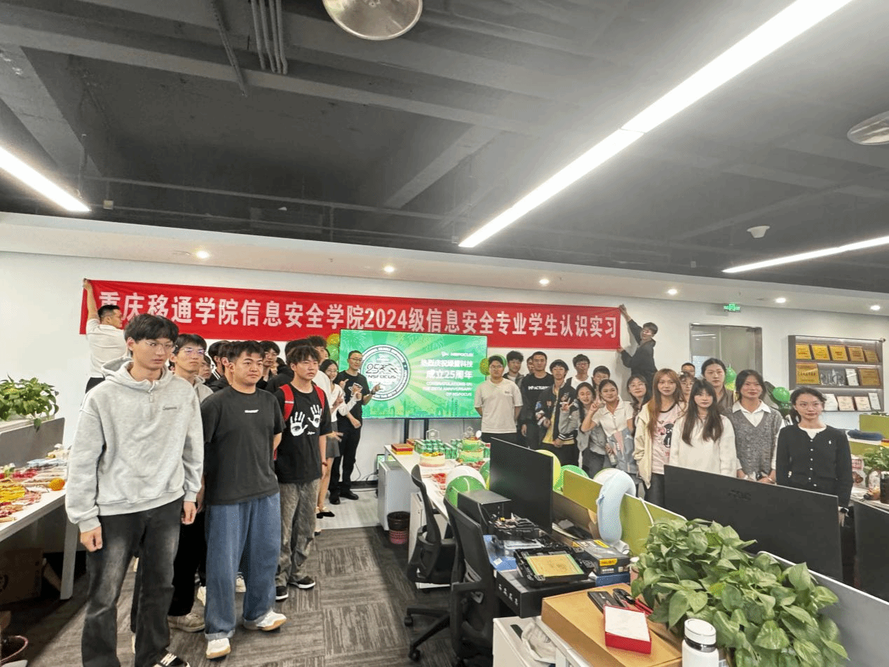 在科技浪潮奔涌、行业格局日新月异的当下,大学生们满怀着对知识的渴望与对未来职业的憧憬,勇敢地迈出校园,投身认识实习的广阔天地。2025年4月25日,2024级信息安全4班的同学们在严杨志老师的带领下走进绿盟科技集团股份有限公司,开启了一场沉浸式的认识实习之旅。