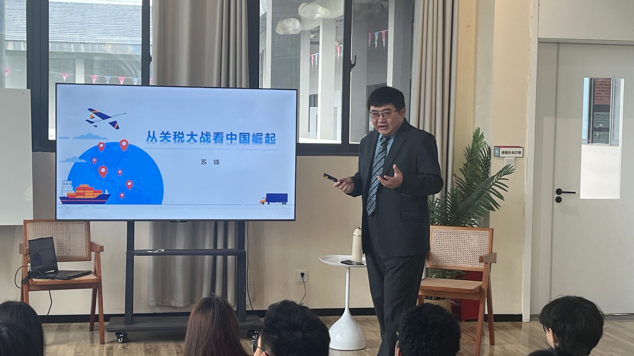 下午的公开课以沙龙形式展开,苏锋院长凭借其深厚的学术造诣和行业经验,深入分析了关税大战的起因、发展及其对全球经济和中国产业的影响。他通过具体案例,如出口导向型企业面临的订单锐减和新兴科技企业的逆势招聘,生动阐释了关税变动对不同行业就业市场的影响。