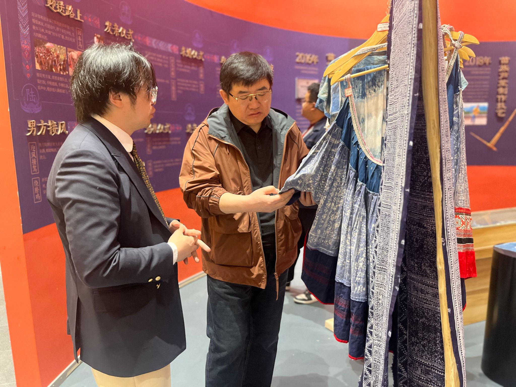 在地域文化与城市发展研究院的彭浩老师热情接待下,苏锋院长开启了一场沉浸式的綦江非物质文化遗产之旅。彭老师从“味、绣、听”等多维角度,向院长生动展示了綦江独特的文化瑰宝:品尝传统美食的醇厚滋味,欣赏精美苗绣的匠心工艺,聆听民间曲艺的悠扬韵律。随后,苏院长来到古剑书院,在这里,同学们亲手将自己制作的雨前茶叶赠予院长,这份饱含心意的礼物让苏院长深受感动。