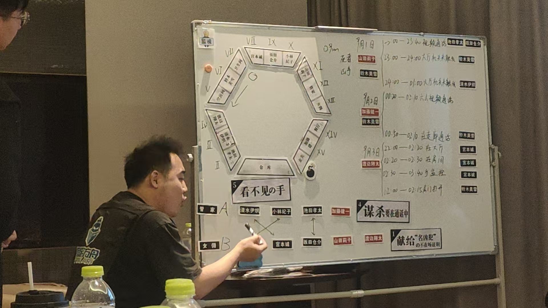春意盎然,桃蹊柳陌。抵达青岛后,团队迅速投入展会工作,签到后,便穿梭于众多剧本杀发行商的展位之间。各展位通过海报、视频、DM(主持人)演绎等形式推介各自的新作,涵盖悬疑推理、情感沉浸、机制阵营等多种题材。师生化身“行业探员”,与发行方深入交流剧本创作、市场定位及运营模式,并依据个人兴趣选定剧本参与现场试玩。