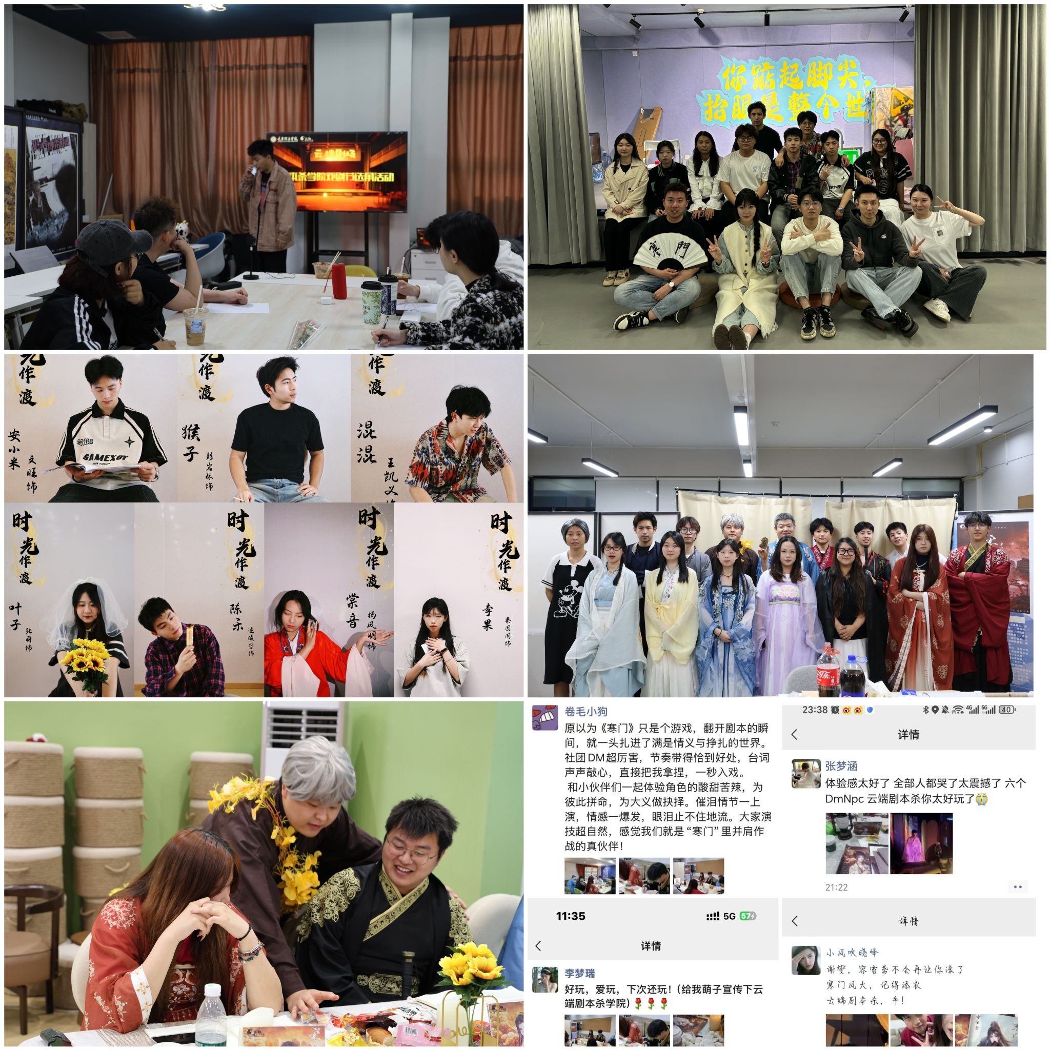 为助力2025“名角杯”校园戏剧节,学院挑选《时光作渡》《寒门》两部大型情感演绎剧本进行呈现。从剧本选角、通宵排练、拍摄定妆照,再到彩排测本、正式呈现。学院DM凭借专业能力、精湛演绎和敬业精神,收获玩家高度认可:朋友圈自发好评打call;和主办方充分肯定:被授予“优秀协作单位”。此次活动充分彰显了学院在DM培养方面的成果,为戏剧节增添一抹亮色。