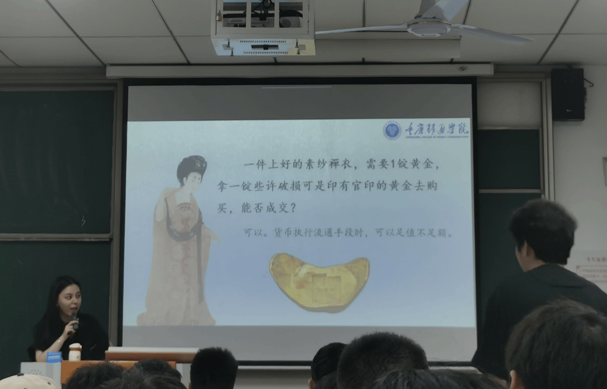 课程伊始,王梓凡老师以原始社会“以牛换米”的偶然交易为引,抛出“如何突破物物交换困境”的问题,随后通过展示春秋战国时期的刀币、布币、蚁鼻钱等实物货币图片,指出当人类发现贝壳、金属等实物具有易分割、耐储存的特性时,货币雏形应运而生。