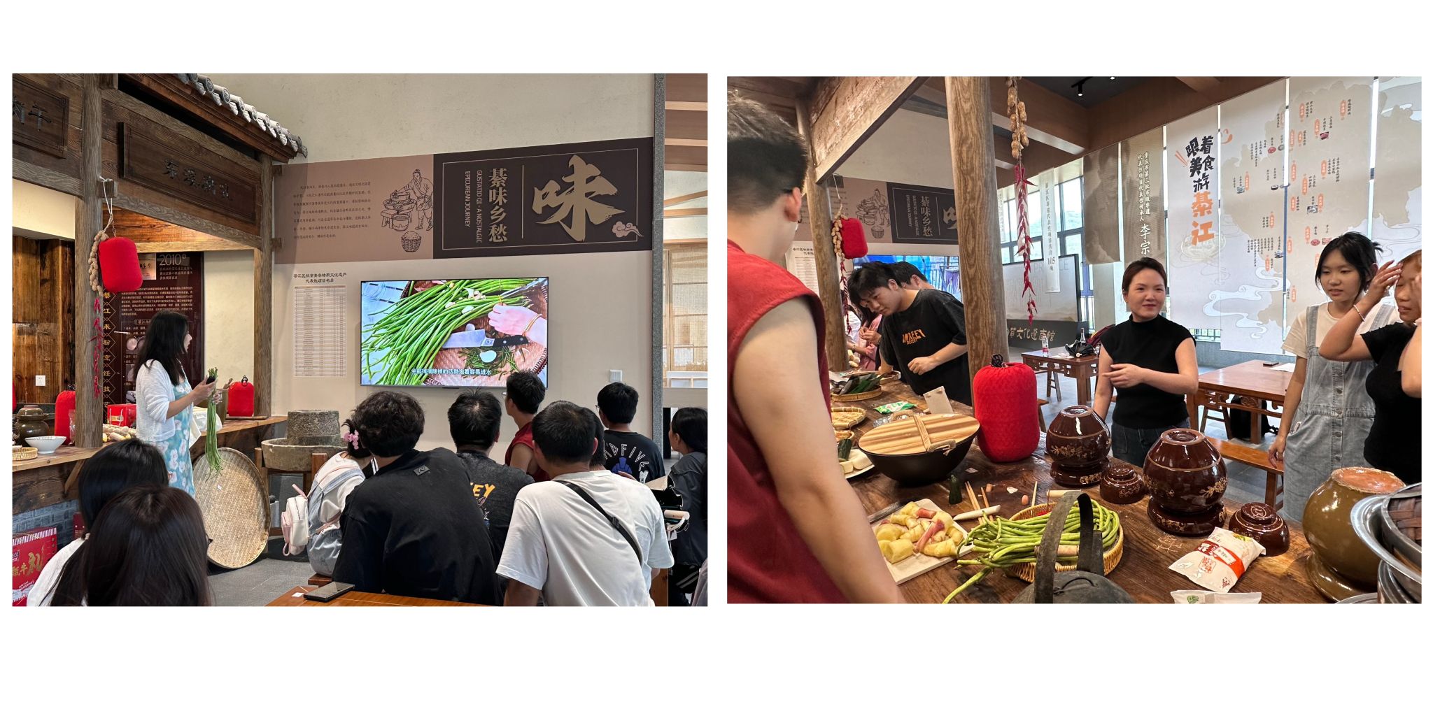 5月21日下午,通识教学部联合横山书院綦阅工坊,组织10余名学生走进綦江非物质文化遗产馆“綦味乡愁”展厅,开展第二期“读一本书,识一座城”主题实践活动。本次活动由通识教学部王梓凡、罗茂格、冉巍三位教师联合策划开展,作为通识课程《巴渝历史与文化》的延伸,聚焦重庆泡菜文化,通过“文化解码+技艺实践”的创新模式,带领学生了解巴渝饮食的文化内涵与制作技艺,并推动通识教育与非遗传承的跨学科联动。