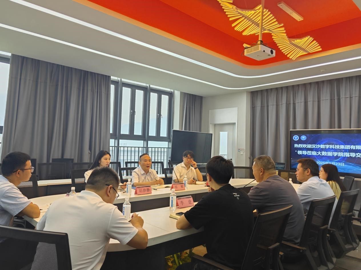 5月23日上午9:00,大数据学院与汉沙数字科技集团校企合作交流会在玉棠书院地心会议室召开。本次会议以"深化产教融合,共育数字人才"为主题,旨在通过校企合作推动虚拟现实技术、数字媒体技术等专业的建设与发展。汉沙数字科技集团董事长邓辉、副总经理谢理成等企业代表,大数据学院院长潘显兵、教学副院长吕云山以及教师代表共同出席了本次会议。