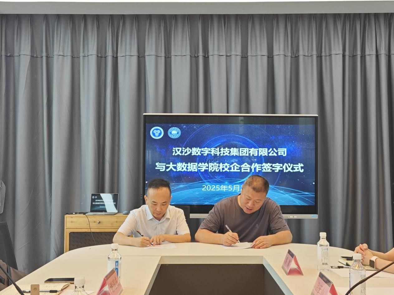 会议最后,潘显兵院长与邓辉董事长分别代表大数据学院和汉沙数字科技集团签署了校企合作协议和认知实践协议。这标志着双方合作进入实质性阶段,为未来深度合作奠定了坚实基础。