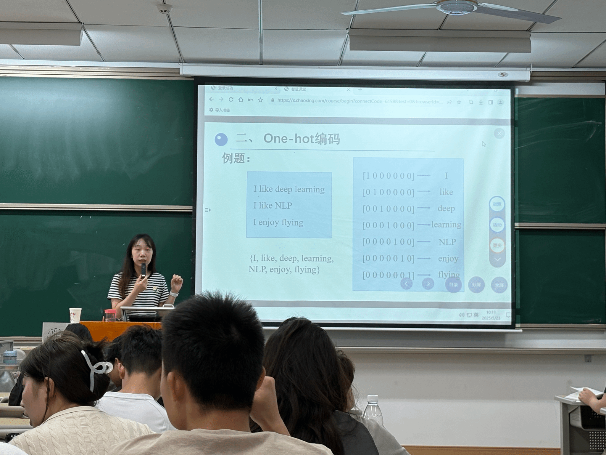 2025年5月23日,一场别开生面的“双师授课”在行者楼102教室精彩展开。数字经济商学院潘莹老师与数理教学部吴小瑞老师联合授课,以“词向量技术的优化与改进”为主题,通过学科交叉视角,为学生呈现了一场理论与应用深度融合的创新课堂。