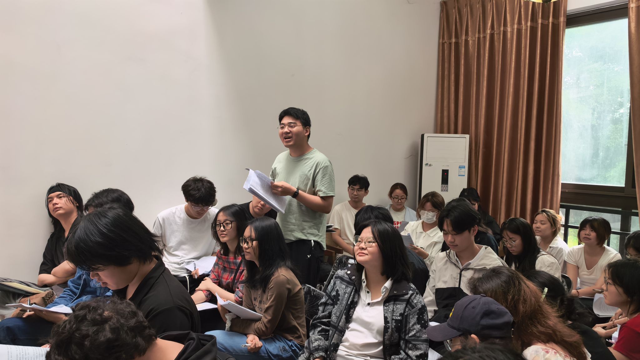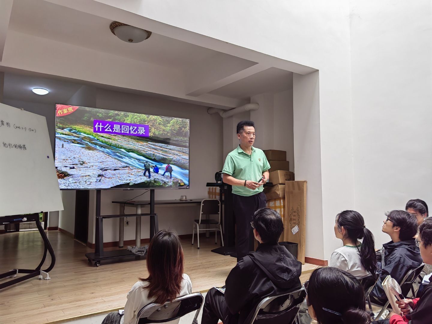 下午,王恒绩老师开启了“书写记忆的脉络——回忆录”教学篇章,点出了非虚构写作让人着迷的地方,正是因为它的真实性。这看似比虚构写作缺少更多的创作自由,但它逼着写作者卖力地挖掘事实、搜集信息,非虚构写作的创造性正蕴含在此间。王老师以“移通报到的第一天”为引,带领同学们纷纷陷入回忆,踊跃分享自己初入大学时的新奇、懵懂与憧憬。梁英台同学回忆起第一次离开家乡河南,在平原长大的她第一次学着坐高铁,迈出自己成长的第一步,重庆这个山城对梁同学充满了惊喜,同时也有对陌生环境的好奇与不安;赵博凯同学从自己独特选大学的方法讲起,谈到从祖国的西北方——内蒙古来到了祖国的西南方,从一路上遇到的人关于重庆的描述,到亲眼见识到的重庆的不同。同学们的发言引起一个又一个同学的共鸣,现场气氛热烈非凡,一个个故事生动鲜活,仿佛将大家带回到了刚踏入大学校门的那一刻。