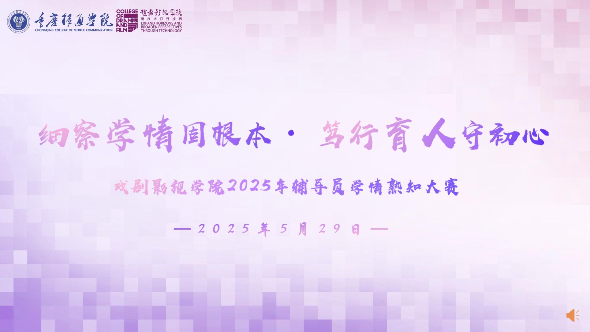 为深入学习贯彻习近平新时代中国特色社会主义思想和党的二十大精神,积极落实《普通高等学校辅导员队伍建设规定》,进一步搭建辅导员交流展示平台,推进辅导员队伍建设,戏剧影视学院2025年辅导员学情熟知大赛于5月29日在丁山书院射手座·多功能空间举行。