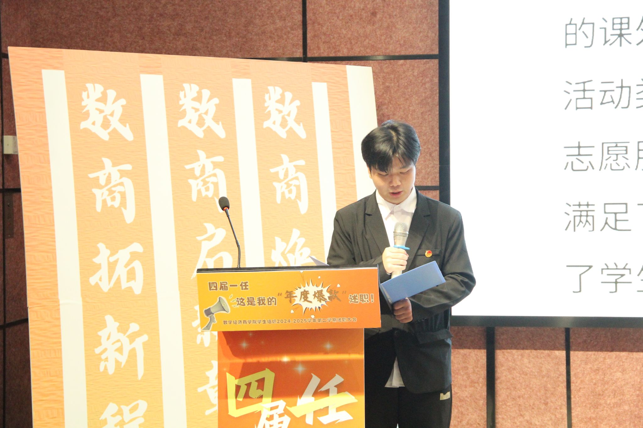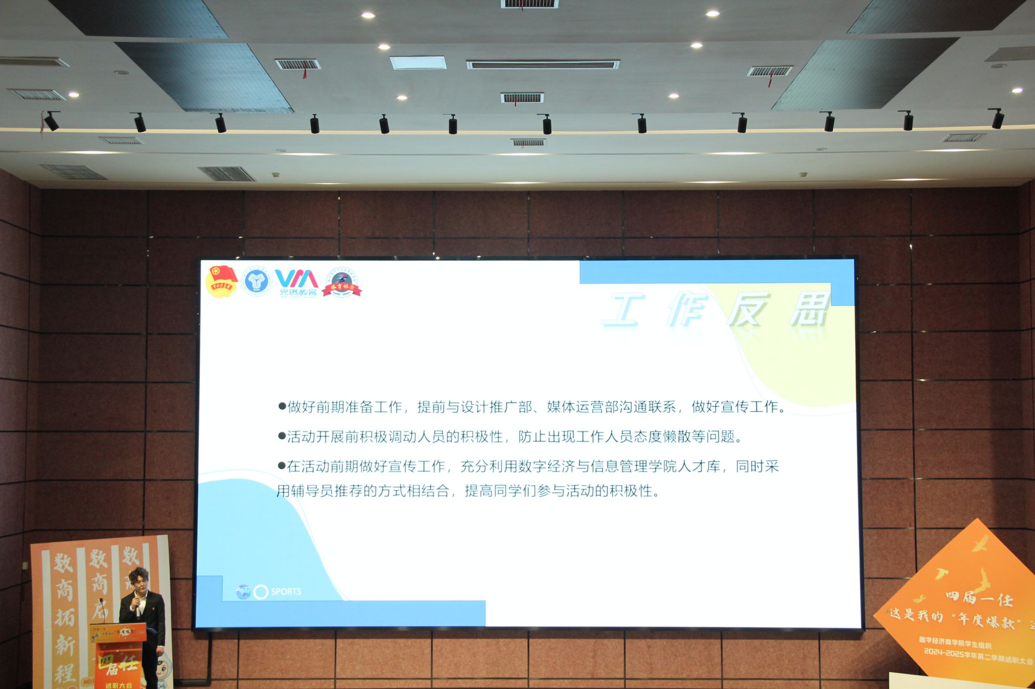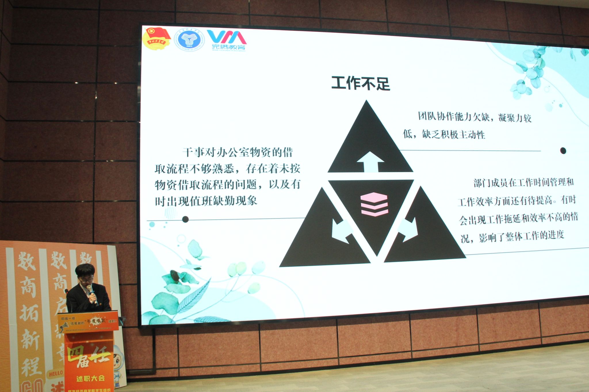 会上,各部门部长以饱满的热情和端正的态度进行了学年工作总结汇报。述职内容涵盖志愿服务、竞技体育、艺术修养、社团活动、就业创业等多个领域,生动呈现了学院过去一学年在多元领域协同发力、硕果累累的奋进图景,充分展现了学生组织的凝聚力与创造力。
