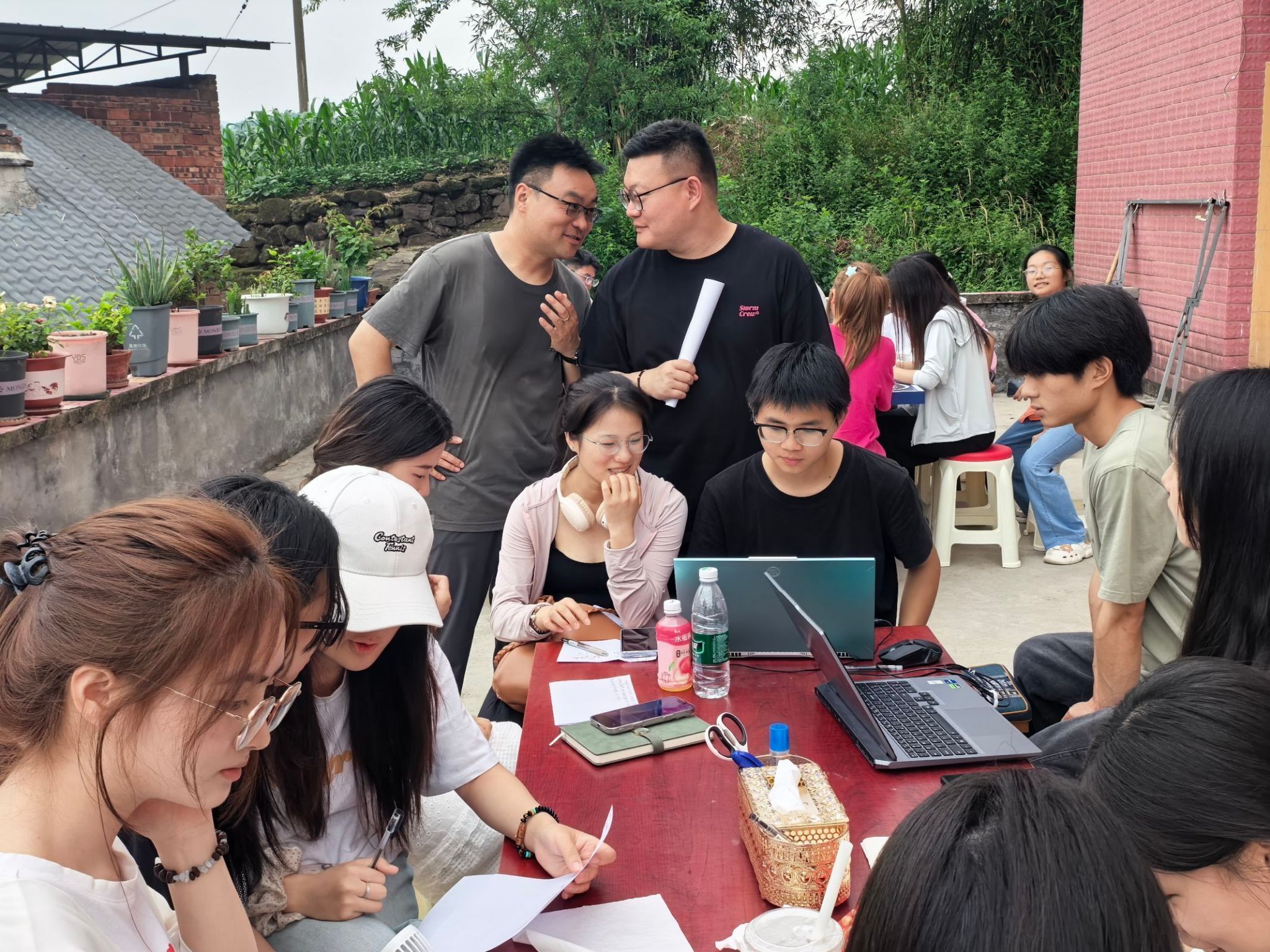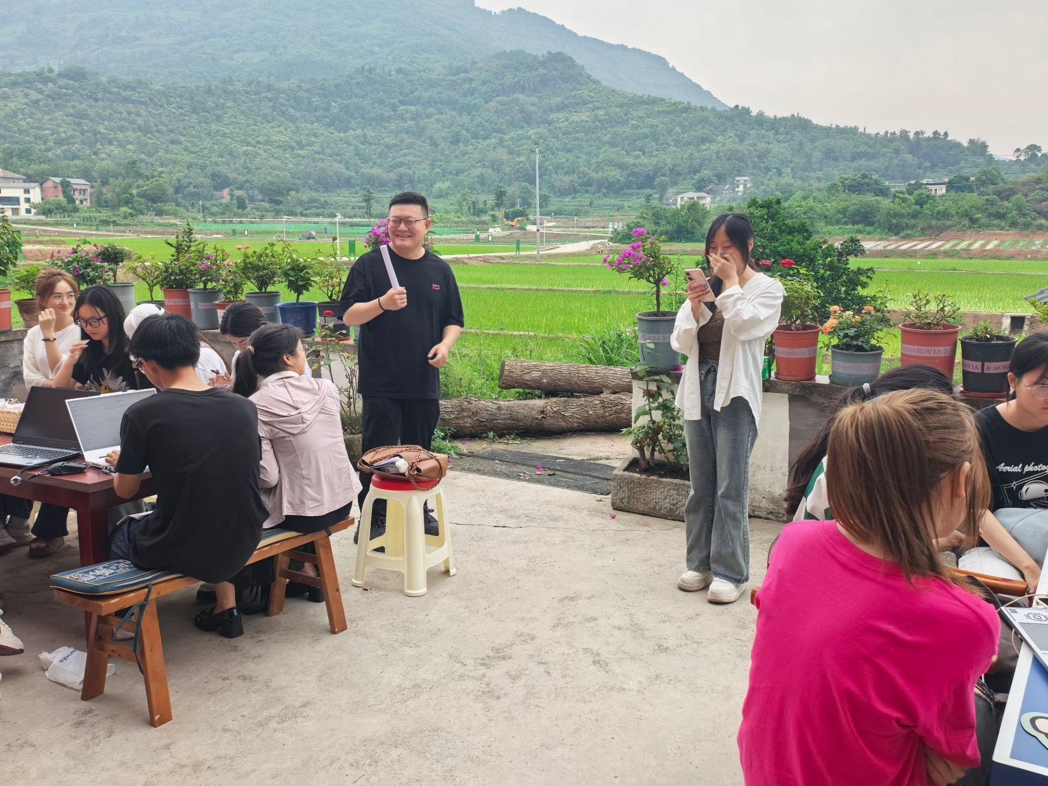 “现在,我要给大家一个不可能完成的任务——”杨文浩老师故意拖长的语调,让学生们瞬间挺直了身子,“在10分钟内,写出一个百字左右的故事梗概,要求有创意到让人拍案叫绝,拒绝任何平庸的套路!”话音刚落,田野里立刻响起了此起彼伏的讨论声。学生们或蹲在田埂上,用树枝在泥土上勾勒情节;或围坐在草垛旁,争得面红耳赤。