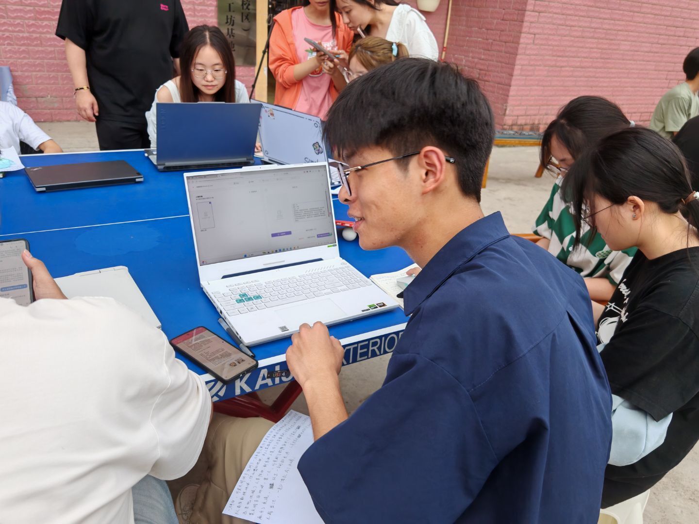 不同于往常整齐的教室座椅,田埂边随意摆放的草垛与木凳成为了天然的“课桌”。学生们背着书包穿梭在麦田之间,眼中满是对这场特殊课堂的期待。“今天我们要做三件事:让文字跳出纸面,让技术拥抱故事,让不同班级的你们成为创意合伙人。”杨文浩老师的开场白如同一颗投入湖面的石子,激起了阵阵好奇的涟漪。