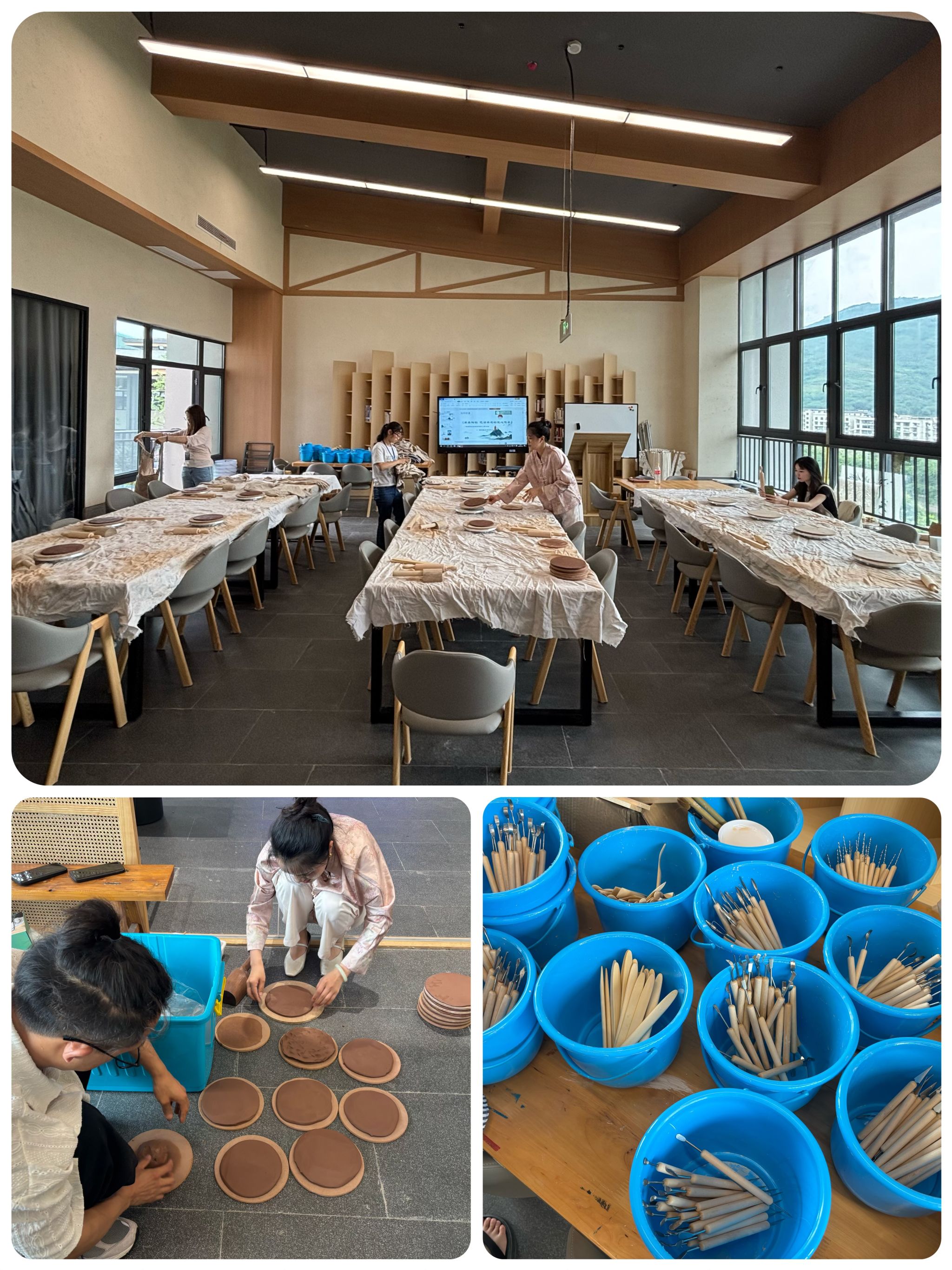 讲座开展前夕,李云杉老师和管永双老师积极筹备,旨在为同学们带来一场最佳的非遗体验。两位老师特地从荣昌带来优质陶泥,确保材质地道。同时两位老师与綦江非物质文化遗产馆多次沟通,确认现场设备完善。除此之外,还反复商讨教学方案,设计适合同学们的陶艺流程与技巧讲解,最终才能让同学们尽情发挥创意。