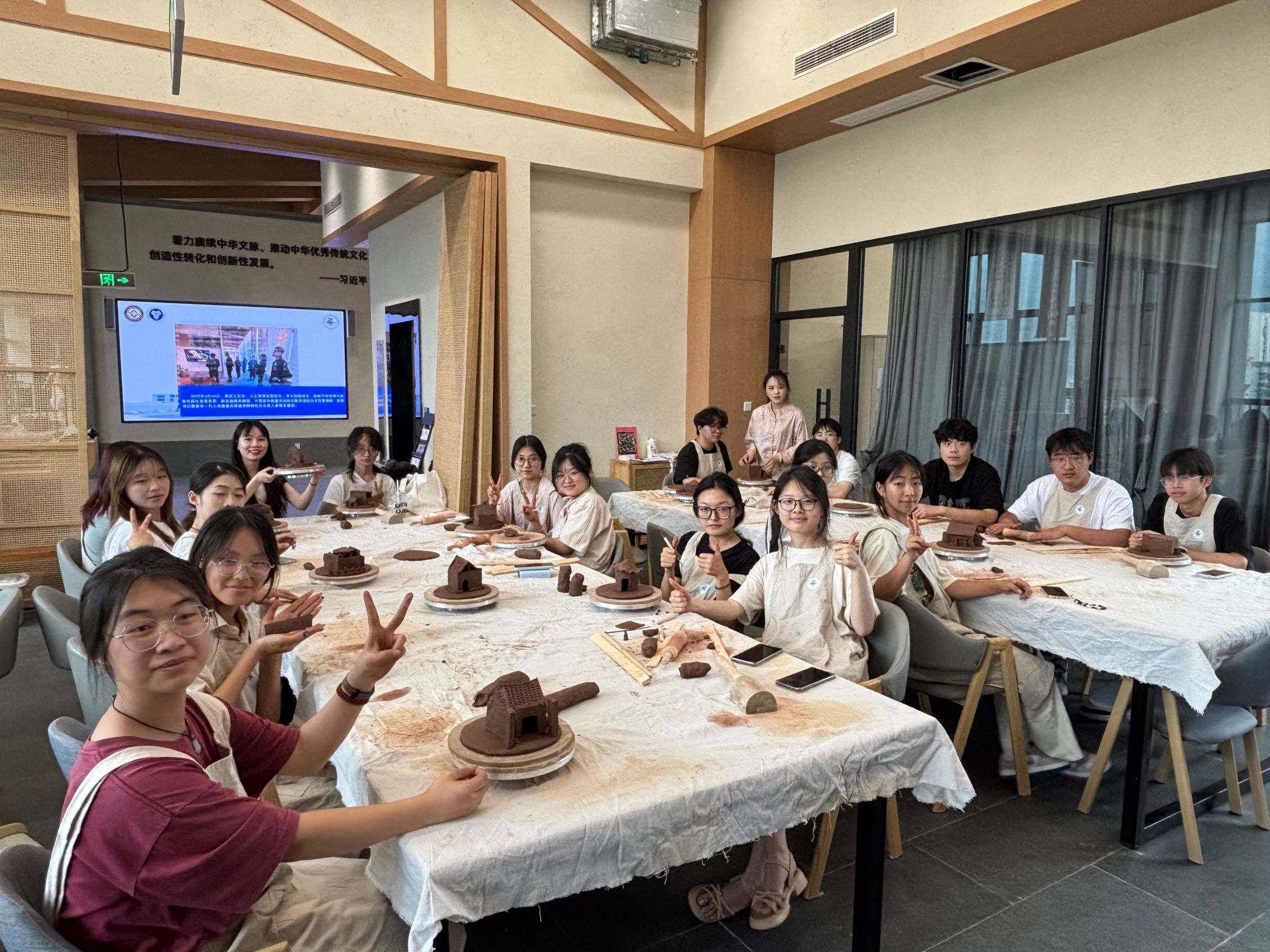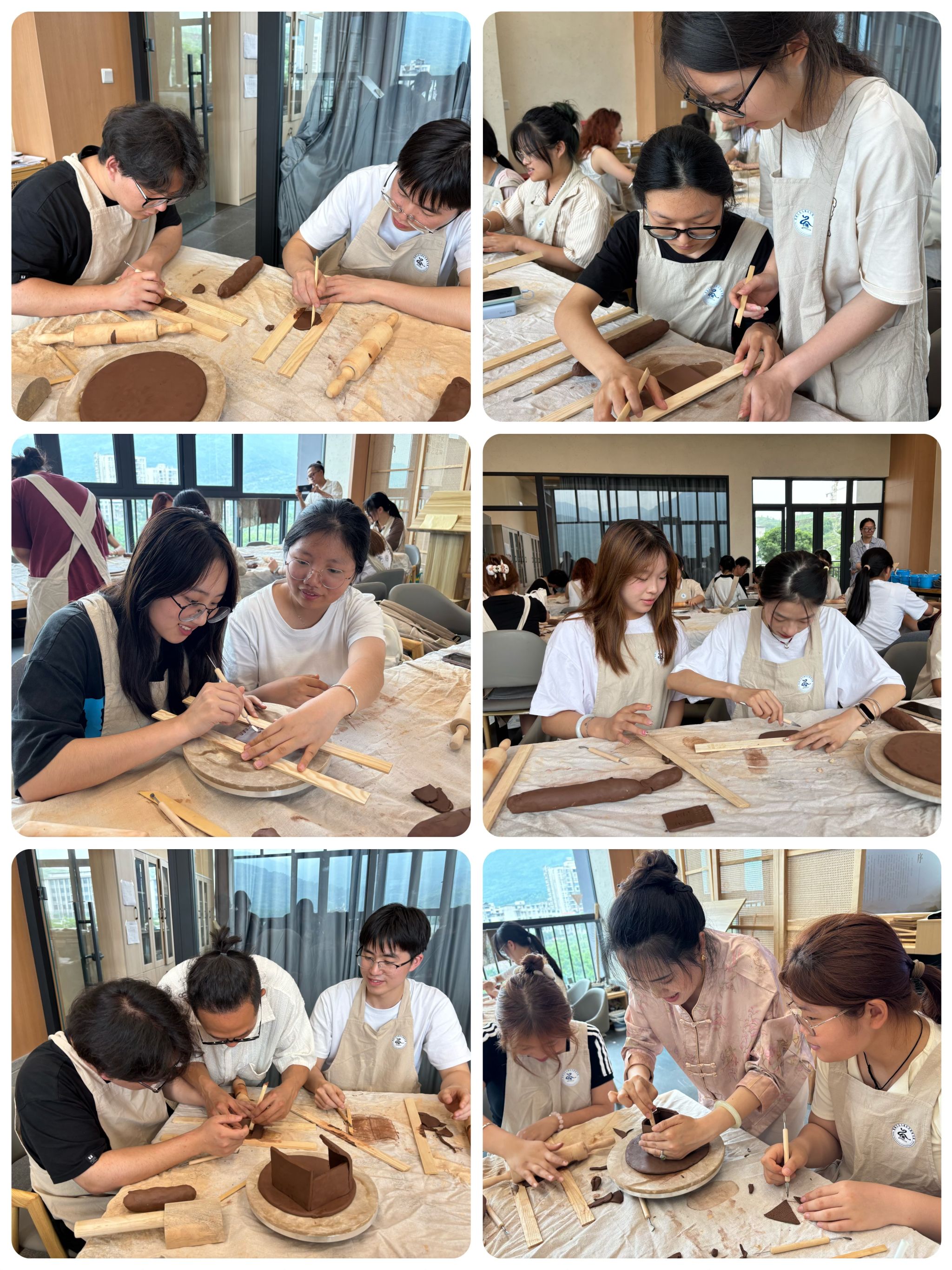 技艺体验环节,同学们两两分组,合作默契。有人负责擀制泥块,有人专注黏合,各司其职又协同并进。李云杉老师和管永双老师穿梭指导,以精湛技艺为同学们答疑解惑。