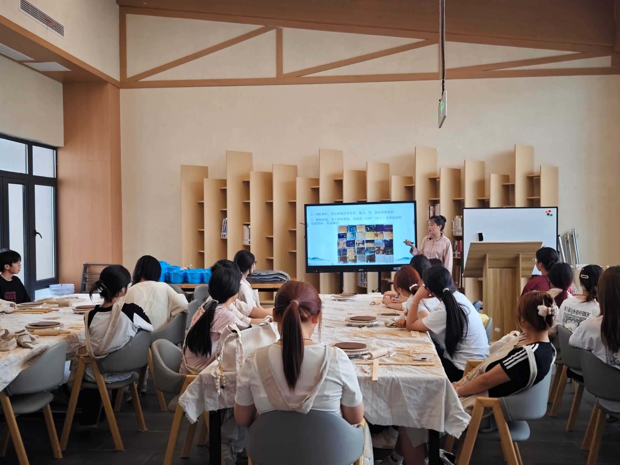 在以“理论为基,实践为翼”的讲授思路下,本次讲座设定别具巧思,李云杉老师以“书院”为主题,引导同学们用泥板捏制心中的书院。初始时,同学们面对复杂主题稍显怯意,但在李老师“实践出真知”理念的鼓励下,迅速投入创作。她亲手指点,以简单实操激发学生灵感,同学们渐入佳境,大胆融合自身创意,并付诸于实践。
