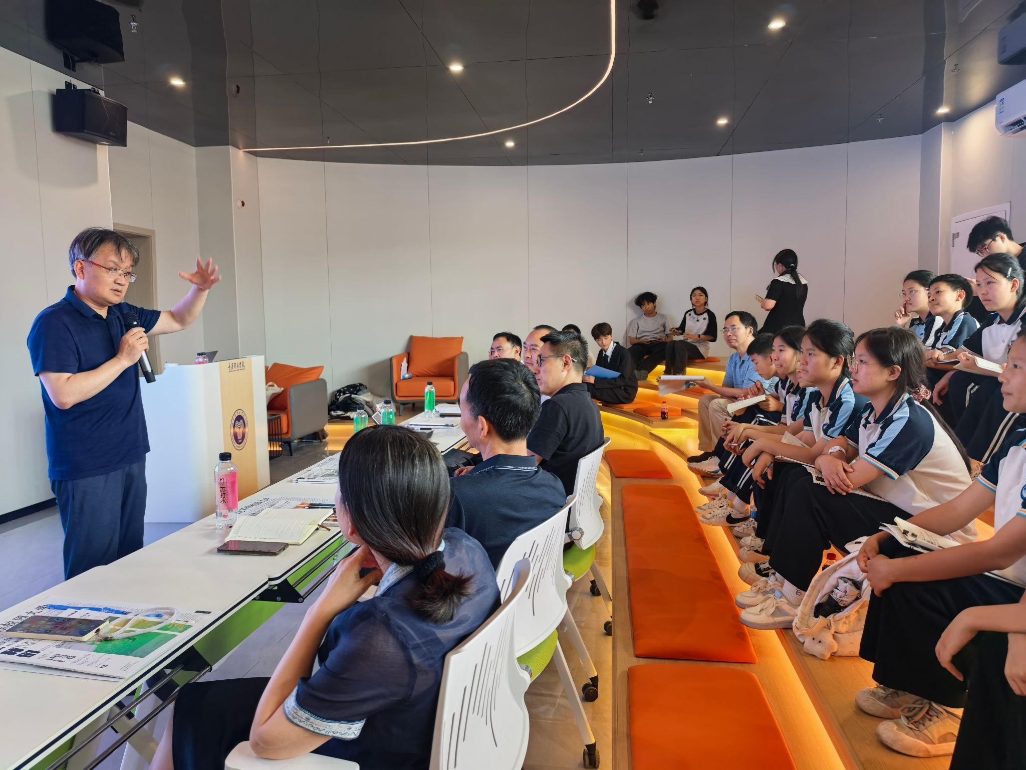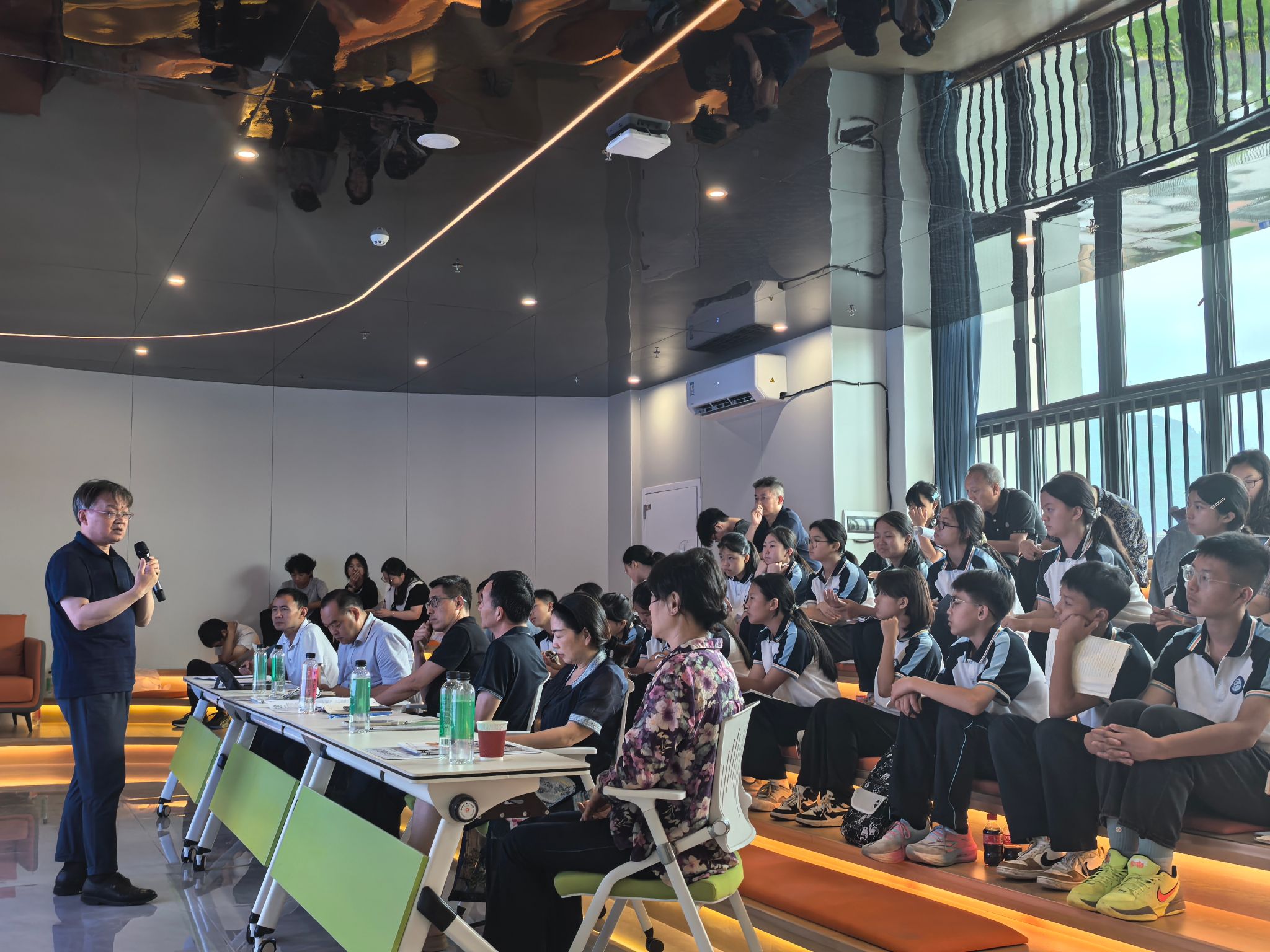 为践行学校“教育教学三提三创”主题年活动方案,2025年6月5日下午2点,来自赶水中学的30名师生顶着酷暑,来到了重庆移通学院綦江校区明善图书馆510梦空间,原来,创意写作学院与赶水中学“校际合作”挂牌仪式暨“作家面对面”第12期文学讲座在此隆重举行。重庆移通学院副校长孙玺,上海大学谭旭东教授,綦江区作家协会刘泽安主席,綦江区评论家协会熊勇主席,赶水中学袁海龙书记、校长等,参加了这次活动。孙玺校长高度肯定了双方合作是高度共赢的盛举,袁海龙校长对双方合作充满期待,创意写作学院副院长苏瓷瓷说,这次挂牌,将更有利于我校辐射周边、服务周边的宏大宗旨。而谭旭东教授的讲座,让赶水中学的学生们,第一次感受到了大教授博学的才华,他们都表示要好好读书。