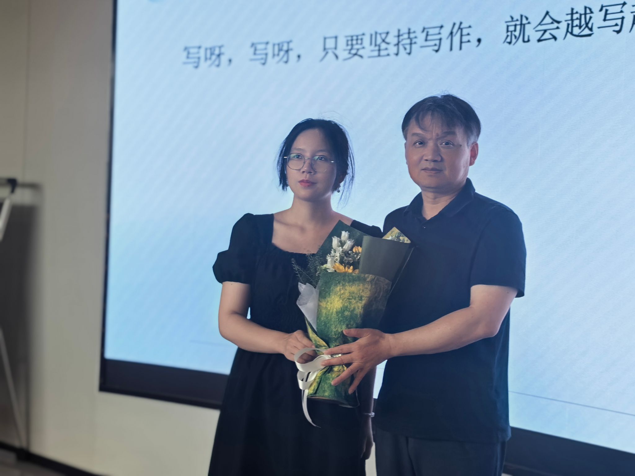 讲座最后,同学们为谭旭东教授献上鲜花,表达敬意与感谢。随后,全体嘉宾、两校教师代表及学生代表共同合影留念,定格这一难忘瞬间,为本次活动画上了圆满的句号。本次活动取得了圆满成功,不仅见证了重庆移通学院与赶水中学校际合作的开启,更通过谭旭东教授的精彩讲座,为同学们带来了丰富的文学滋养。未来,两校将在资源共享、优势互补、协同育人的理念指引下,共同培育更多兼具人文素养与创新能力的新时代少年,助力青少年文学梦想绽放光彩。相信在双方的携手努力下,这场教育合作将结出累累硕果,为教育事业注入新的活力与希望。通过此次校际合作与作家讲座活动,重庆移通学院与赶水中学共同搭建起了一座文学教育的桥梁,让文学的种子在更多孩子心中生根发芽,绽放出绚丽的花朵。