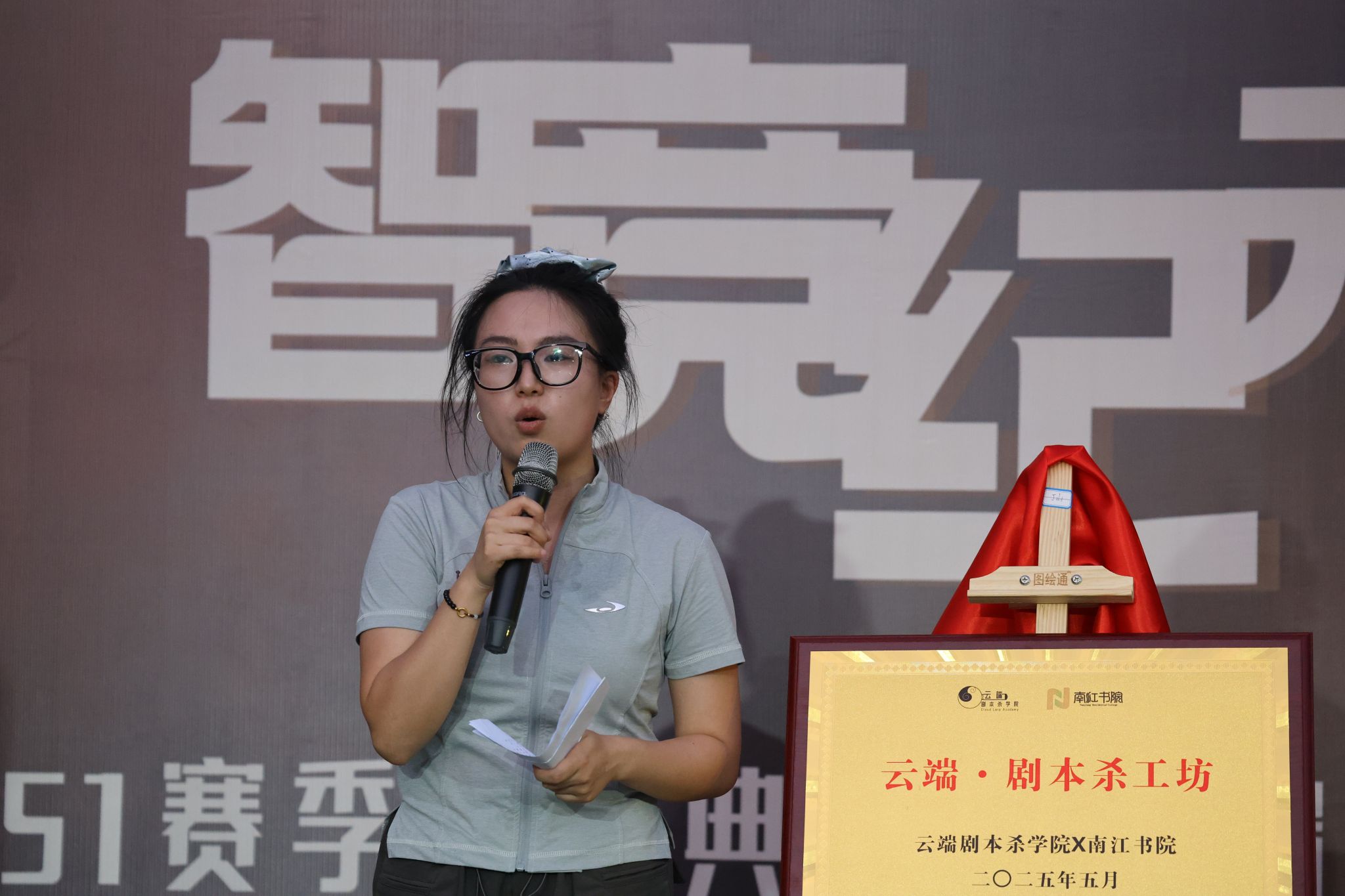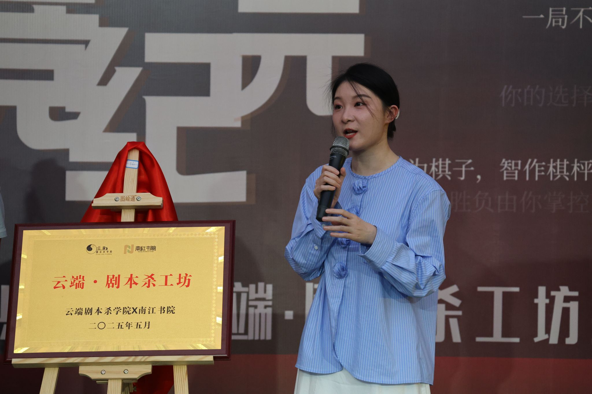 南江书院综合办公室主任罗美琪表示:“云端剧本杀工坊的揭牌与成立,也搭建了新的兴趣圈层平台给予广大学子。希望在云端剧本杀学院专业导师的带领下,细水长流式兴趣工坊的培育中,同学们都能点燃自己的热爱之光。”