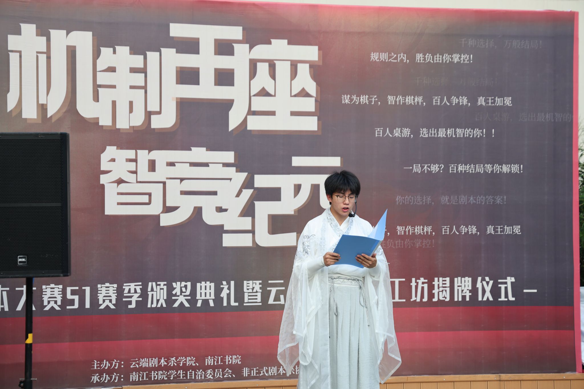6月15日19:00,由綦江校区云端剧本杀学院联合南江书院共同举办的“机制王座:智竞纪元”百人机制本大赛S1赛季颁奖典礼暨云端·剧本杀工坊揭牌仪式在南江书院中庭拉开序幕。