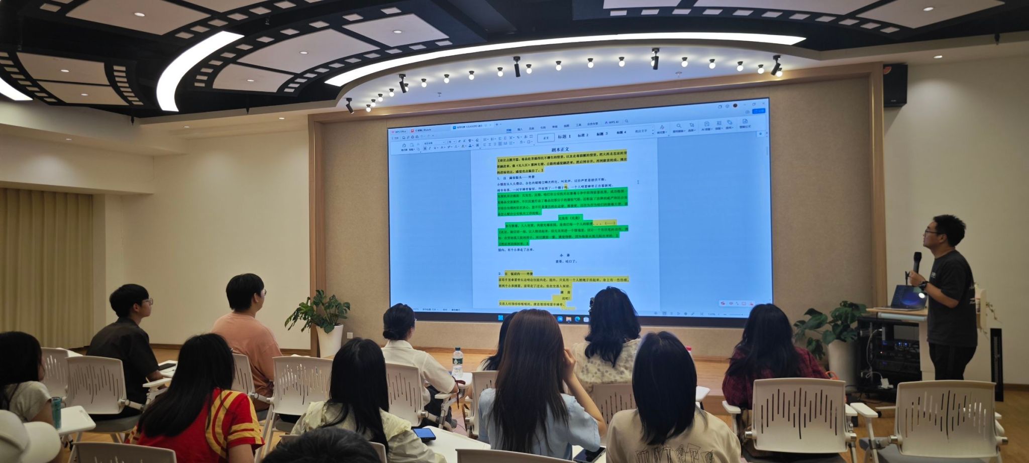 杨文浩老师将沙龙与戏剧工坊的课程紧密结合,特别设置了“剧本医生”的互动环节,学生分组对影片的部分场景进行改写。2023级戏剧工坊学生朱顺熙发散性地重新设计了电影建置部分的情节。王文龙导演当场点评:“这个改编解决了原片‘机械降神’的问题,但需要注意动作场面与叙事逻辑的平衡。”这种“创作-点评-修改”的闭环训练,正是戏剧工坊“实战练兵”理念的核心。